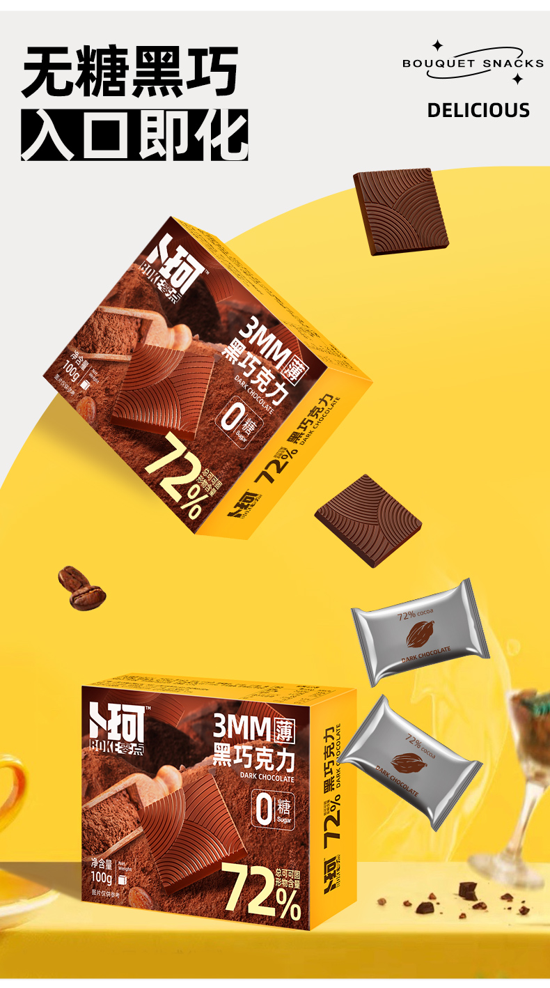 卜珂零点 72%可可黑巧克力 无糖黑巧 100g*8盒 混色(单位:组)