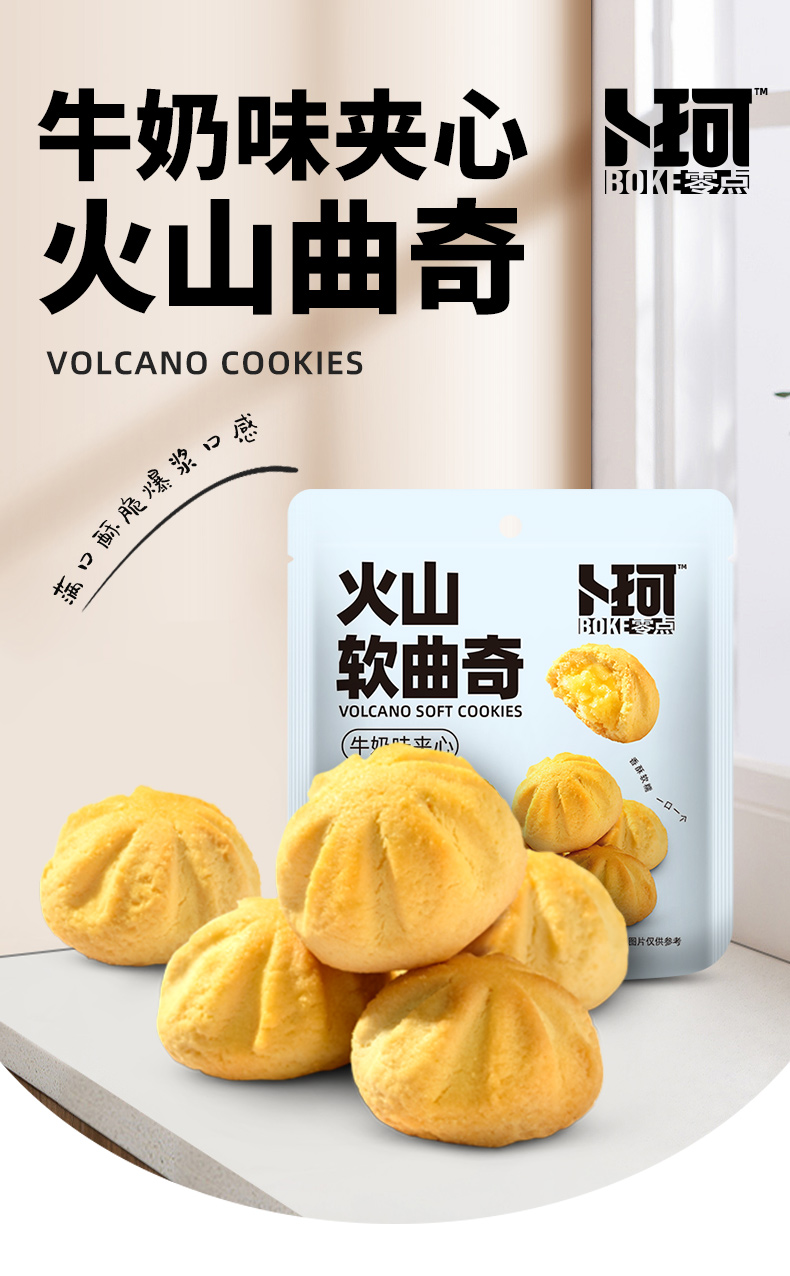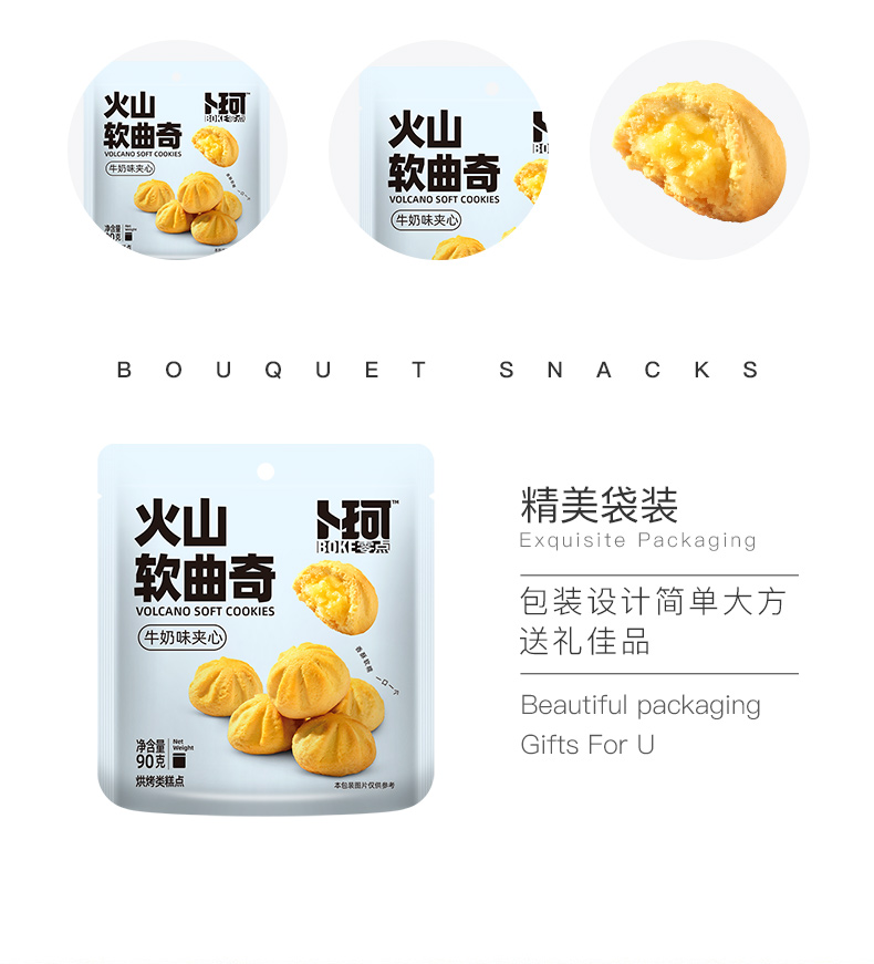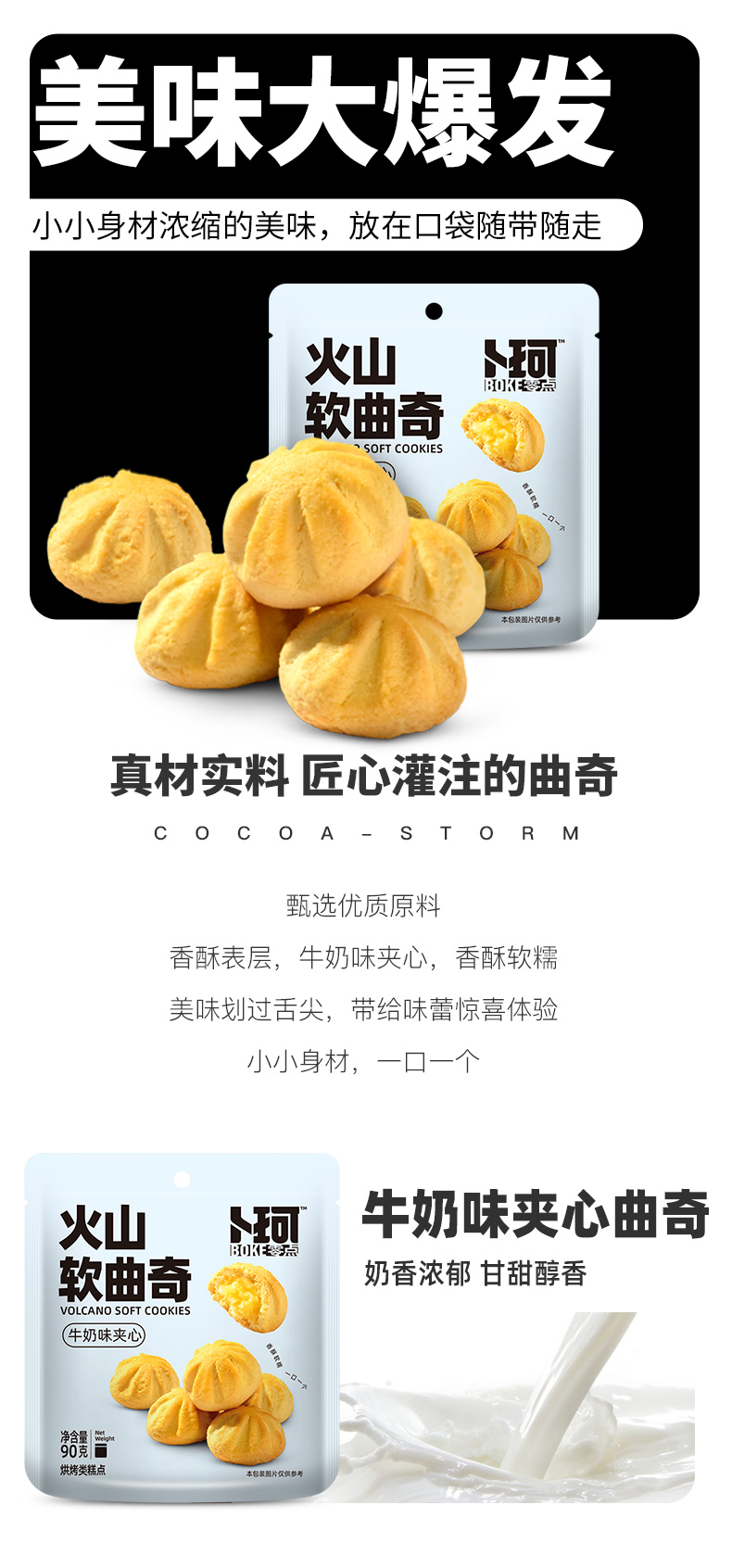 卜珂零点 火山软曲奇饼干 牛奶夹心 90g*8袋 蓝色(单位:组)