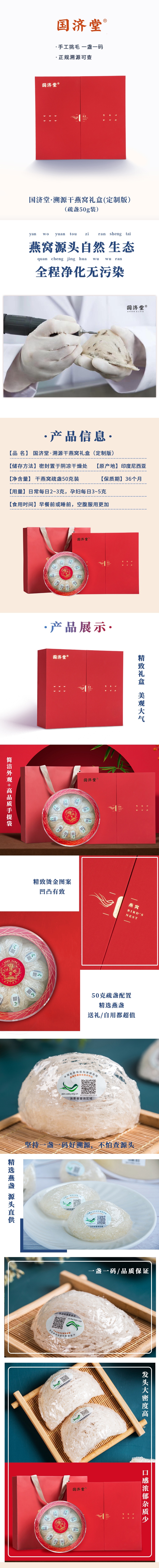 国济堂(GUOJITANG) 溯源干燕窝疏盏定制装 泡发炖煮 50g/盒 红色(单位:盒)