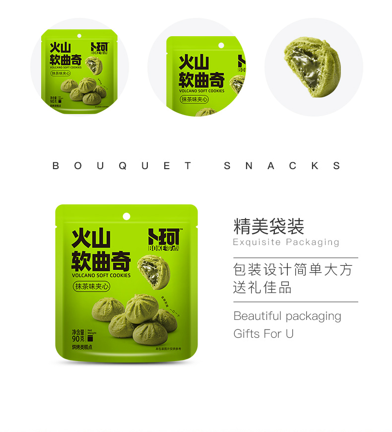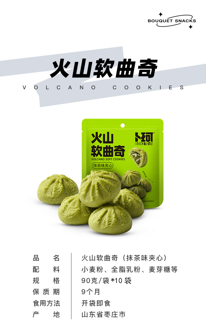 卜珂零点 火山软曲奇饼干 抹茶夹心 90g*10袋 绿色(单位:组)