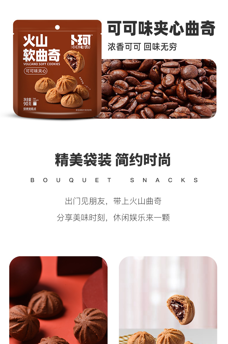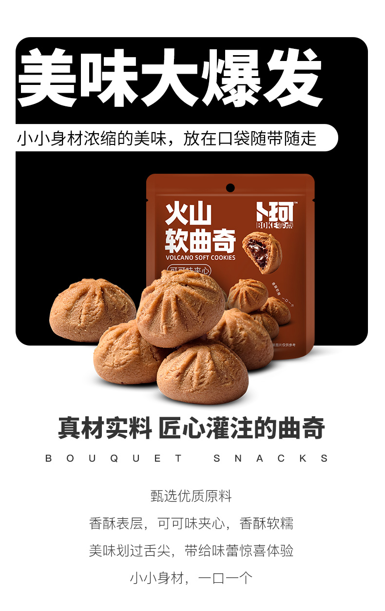 卜珂零点 火山软曲奇饼干 可可夹心 90g*8袋 棕色(单位:组)