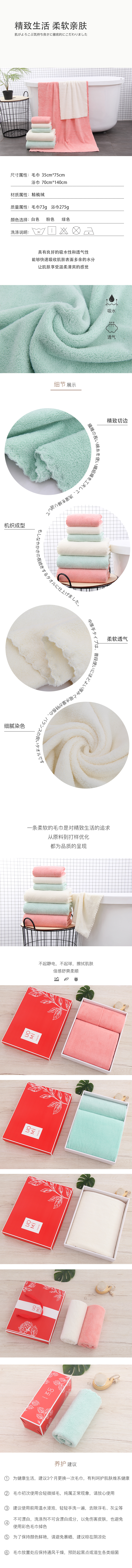 UOMI 优享-2 35*75cm 73g 精梳绒2毛巾装礼盒 套 粉色、白色、绿色