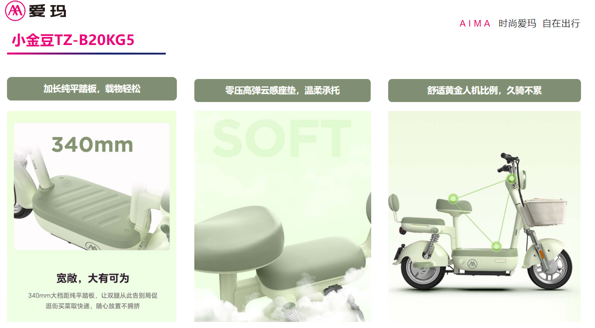 爱玛(AIMA) 新国标小金豆48V21AH电池长续航电动车 TZ-B20KG5 350W电机 黑色(单位:台)
