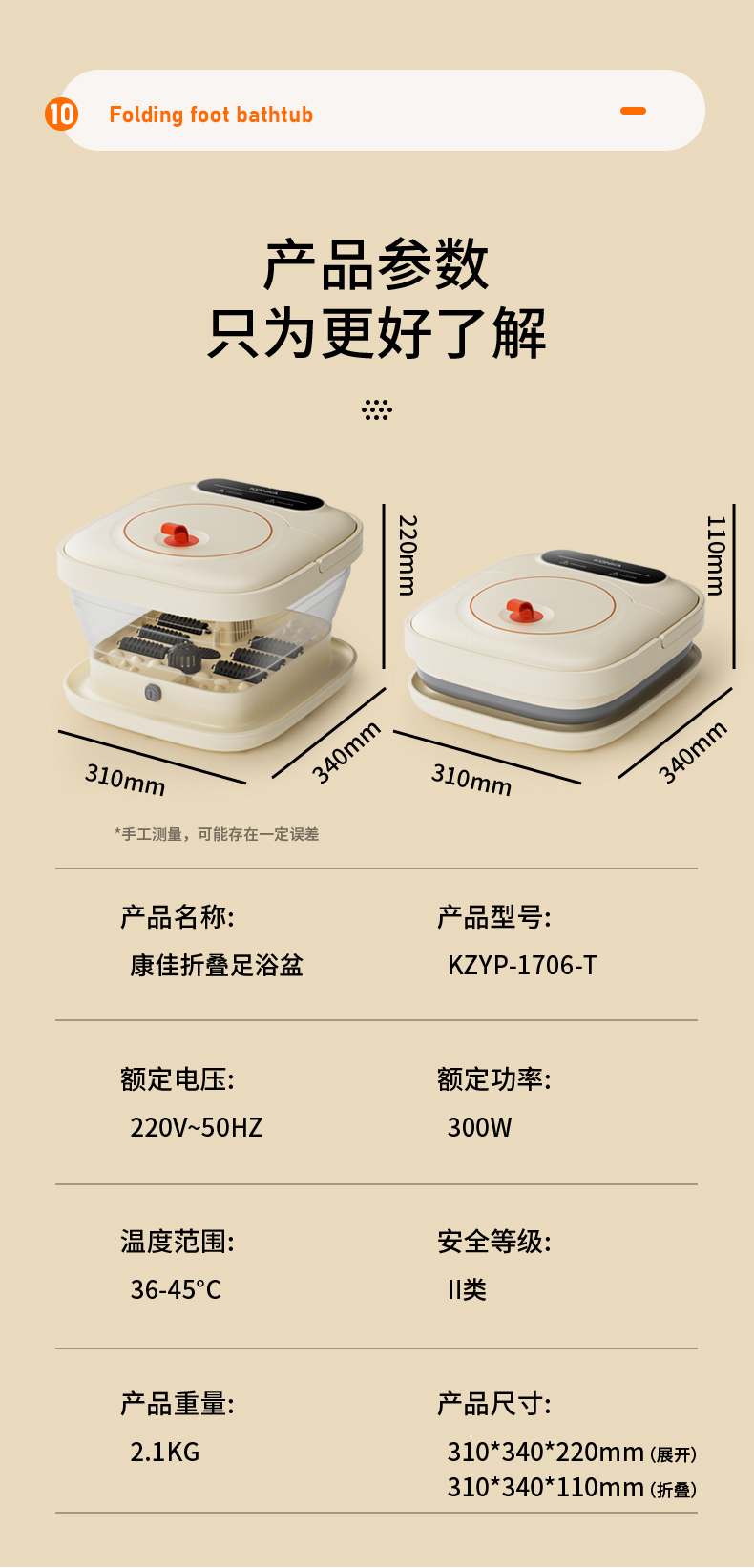 康佳(KONKA) 康佳折叠足浴盆 KZYP-1706-T 19L 米白色(单位:台)