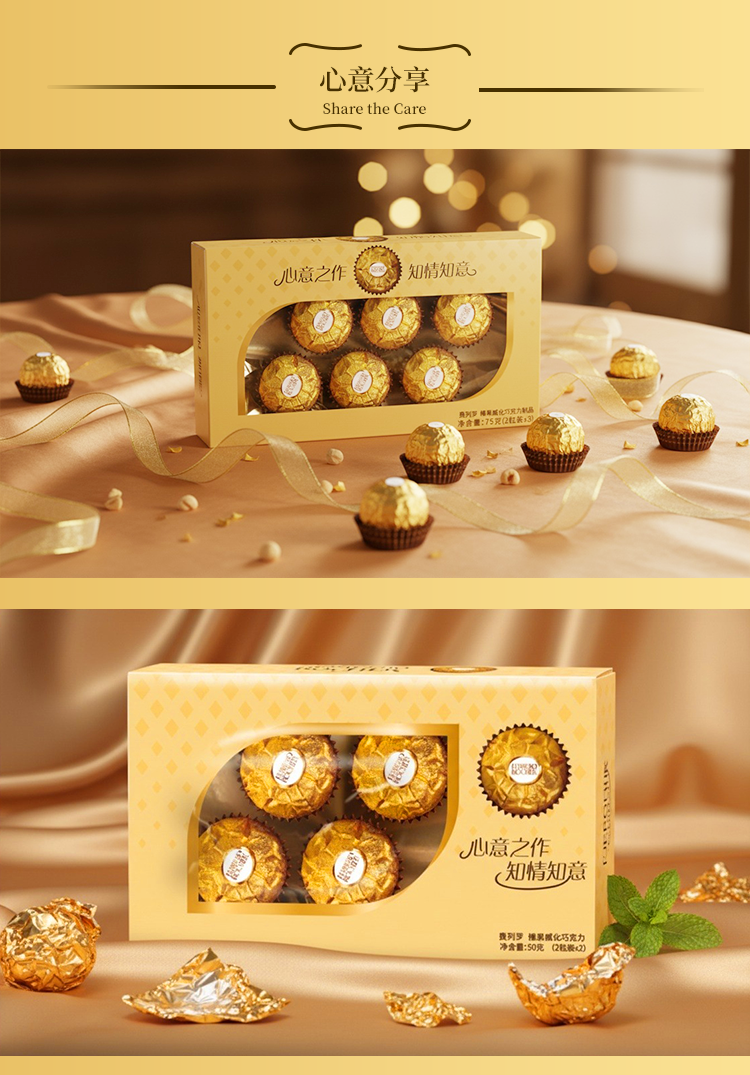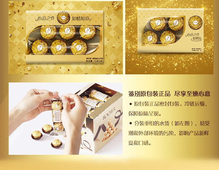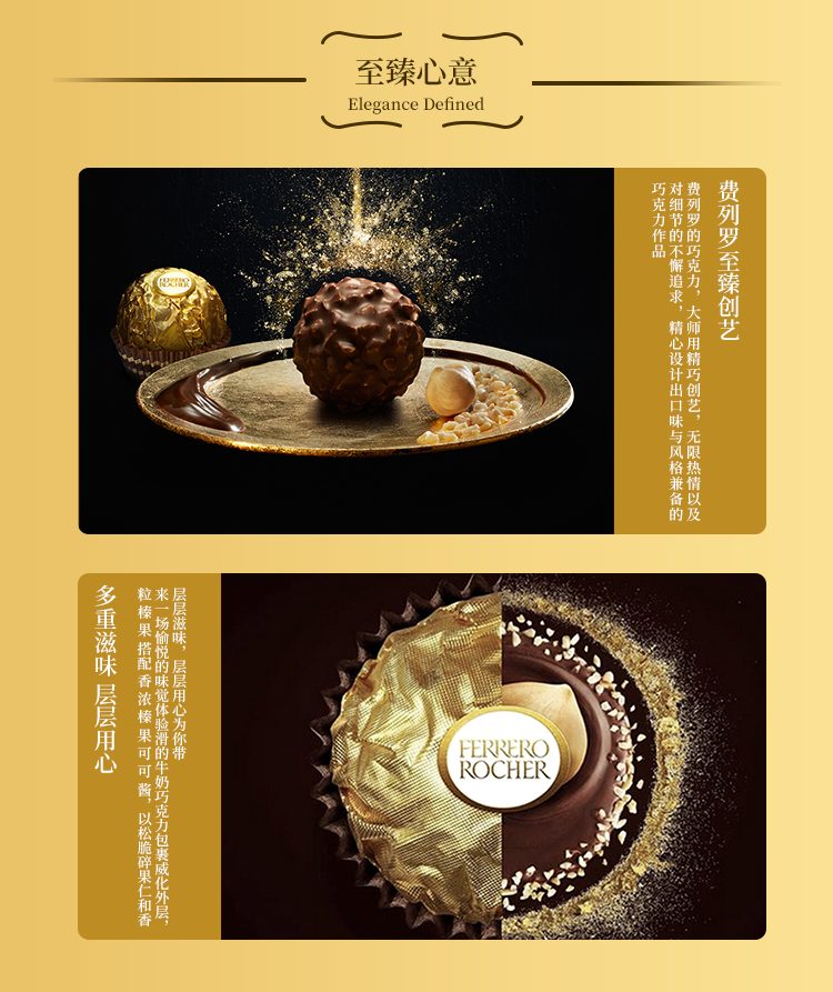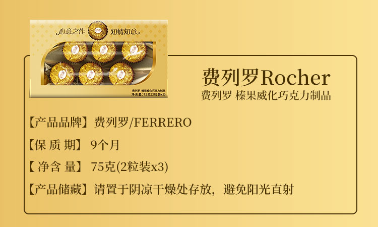 费列罗 榛果威化巧克力 至臻心意 6粒 金色(单位:盒)