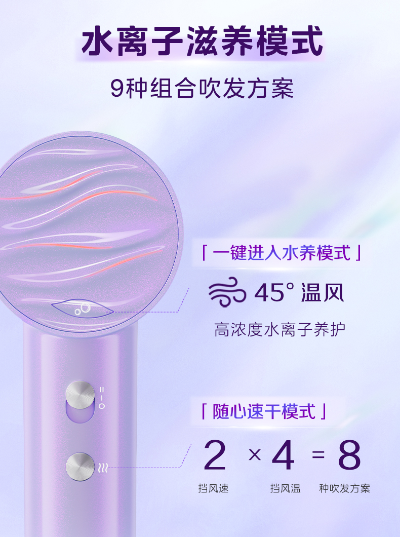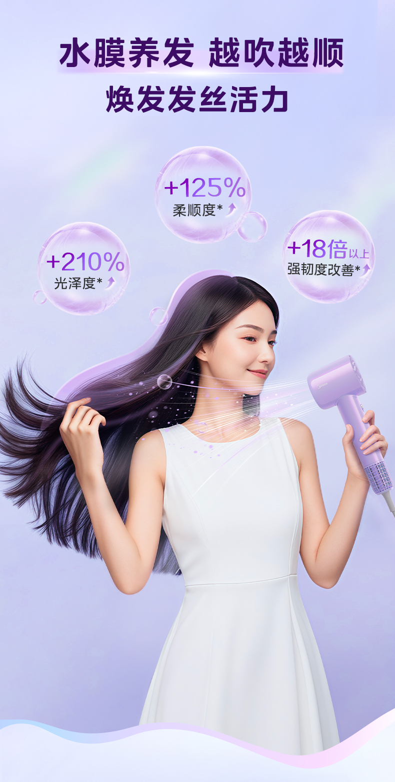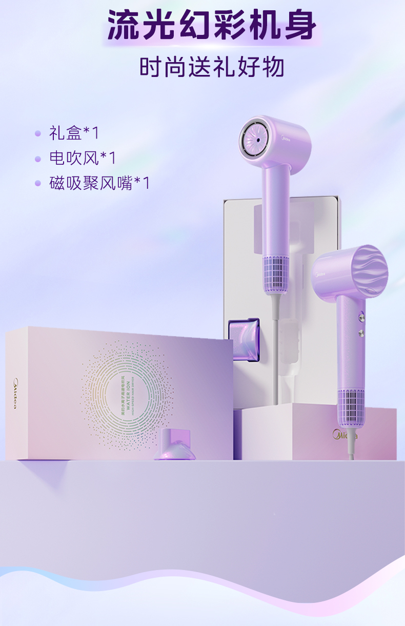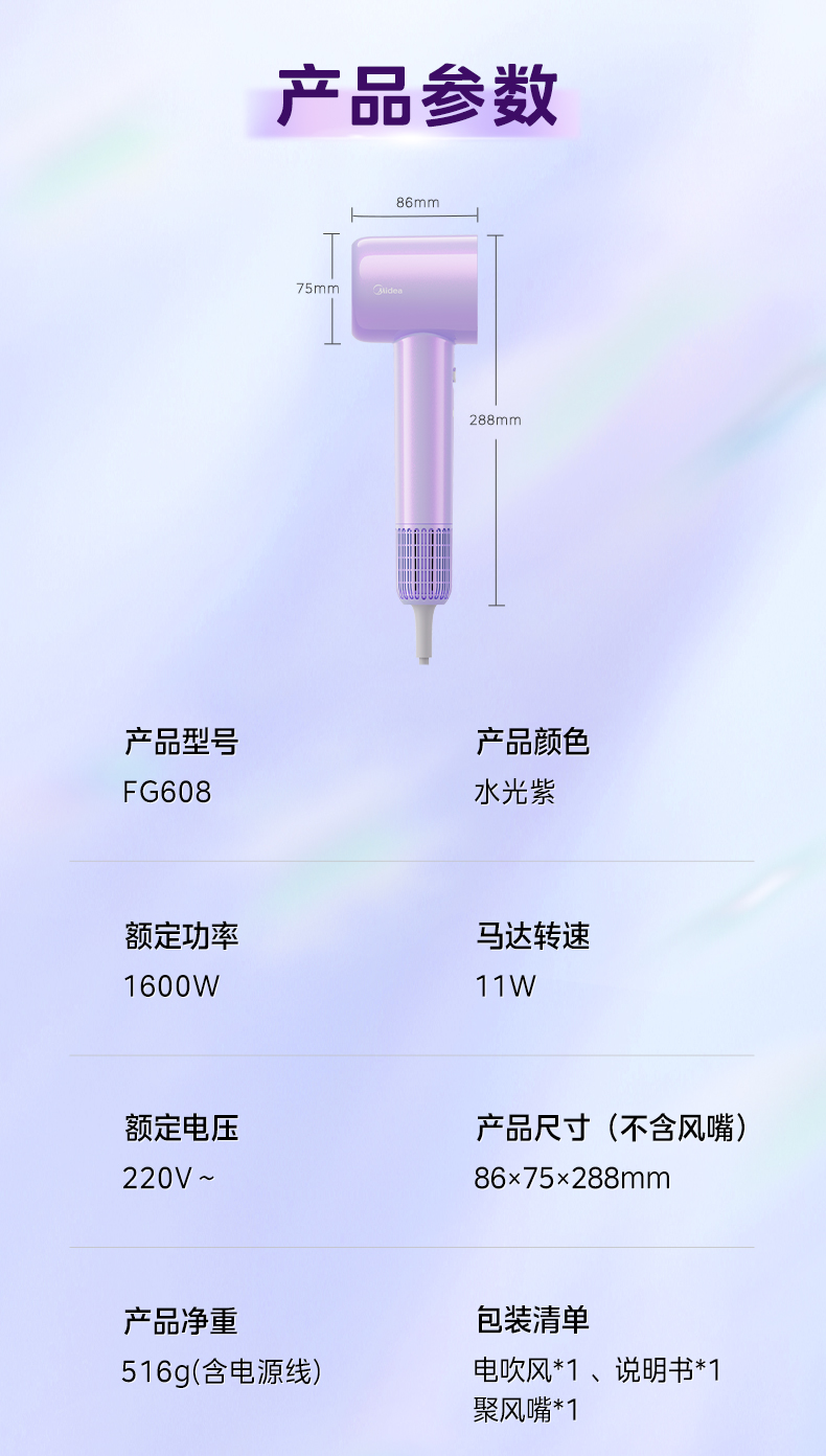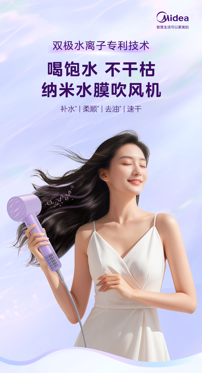 美的(Midea) 高浓度水离子护发吹风机 FG608 1600W 紫色(单位:台)