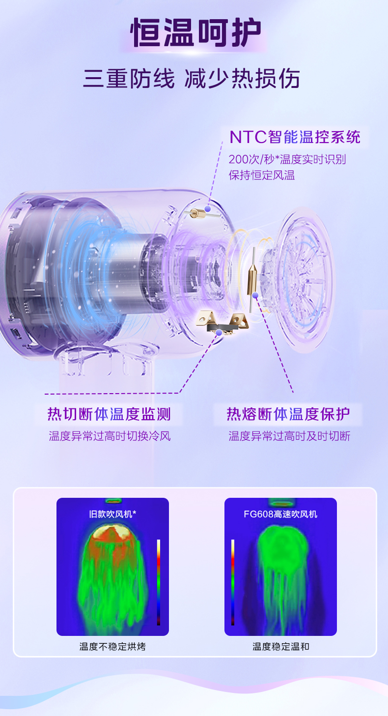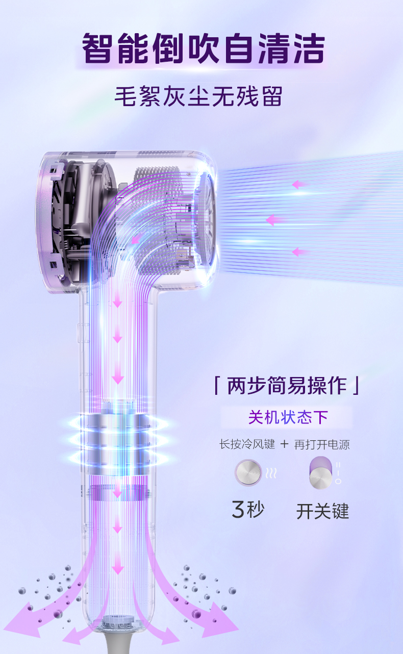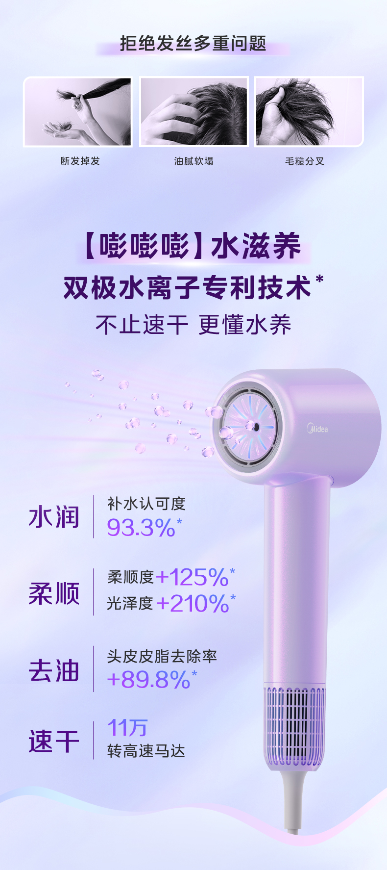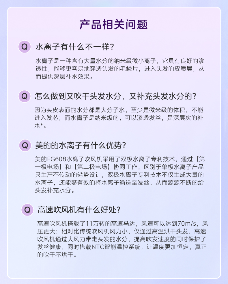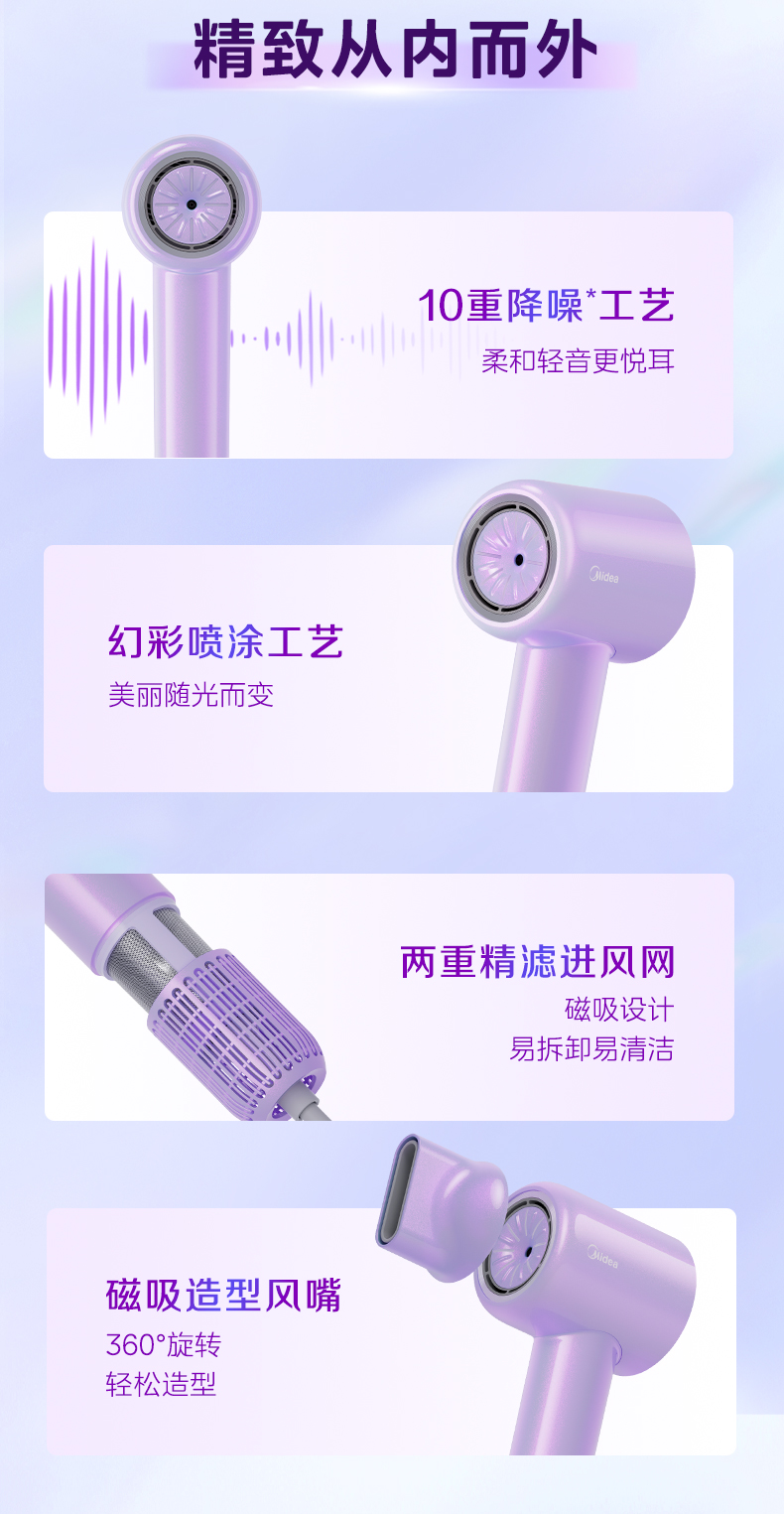 美的(Midea) 高浓度水离子护发吹风机 FG608 1600W 紫色(单位:台)