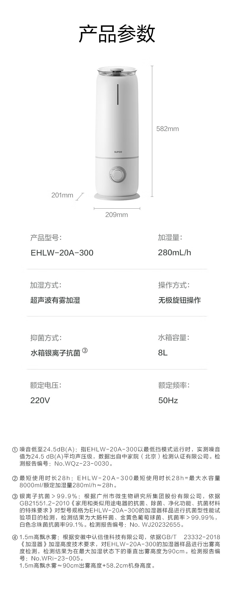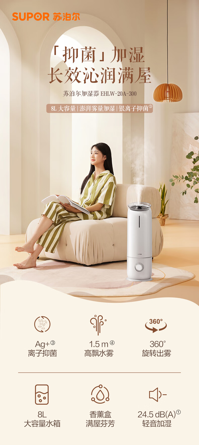 苏泊尔(SUPOR) 加湿器 EHLW-20A-300 8L 珍珠白(单位:台)