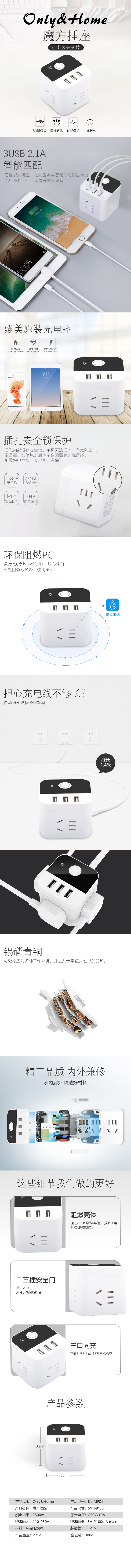 ●3USB 2.1A只能匹配快充,不伤手机兼容更全面。