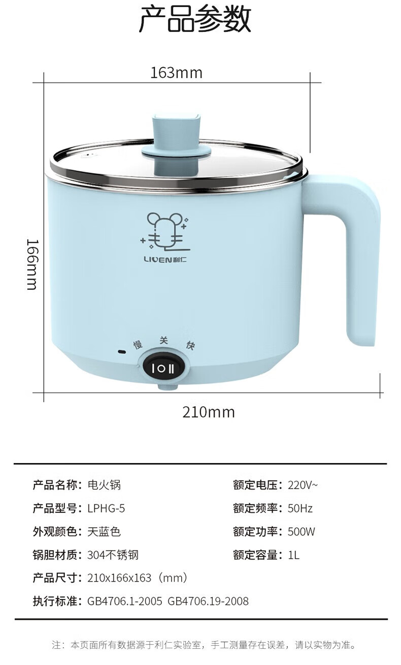 利仁(Liven)电煮锅 多功能 小电锅 1L LPHG-5 台 蓝色