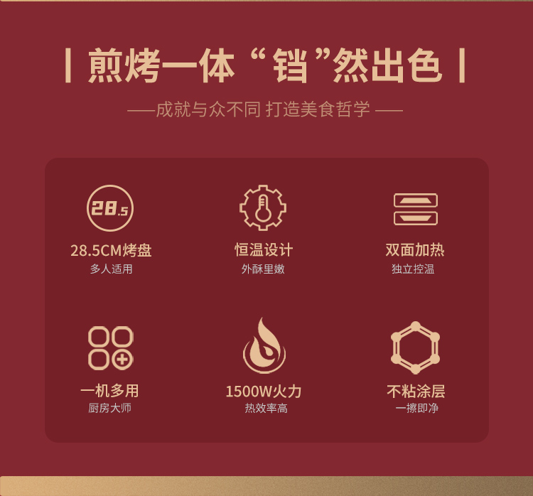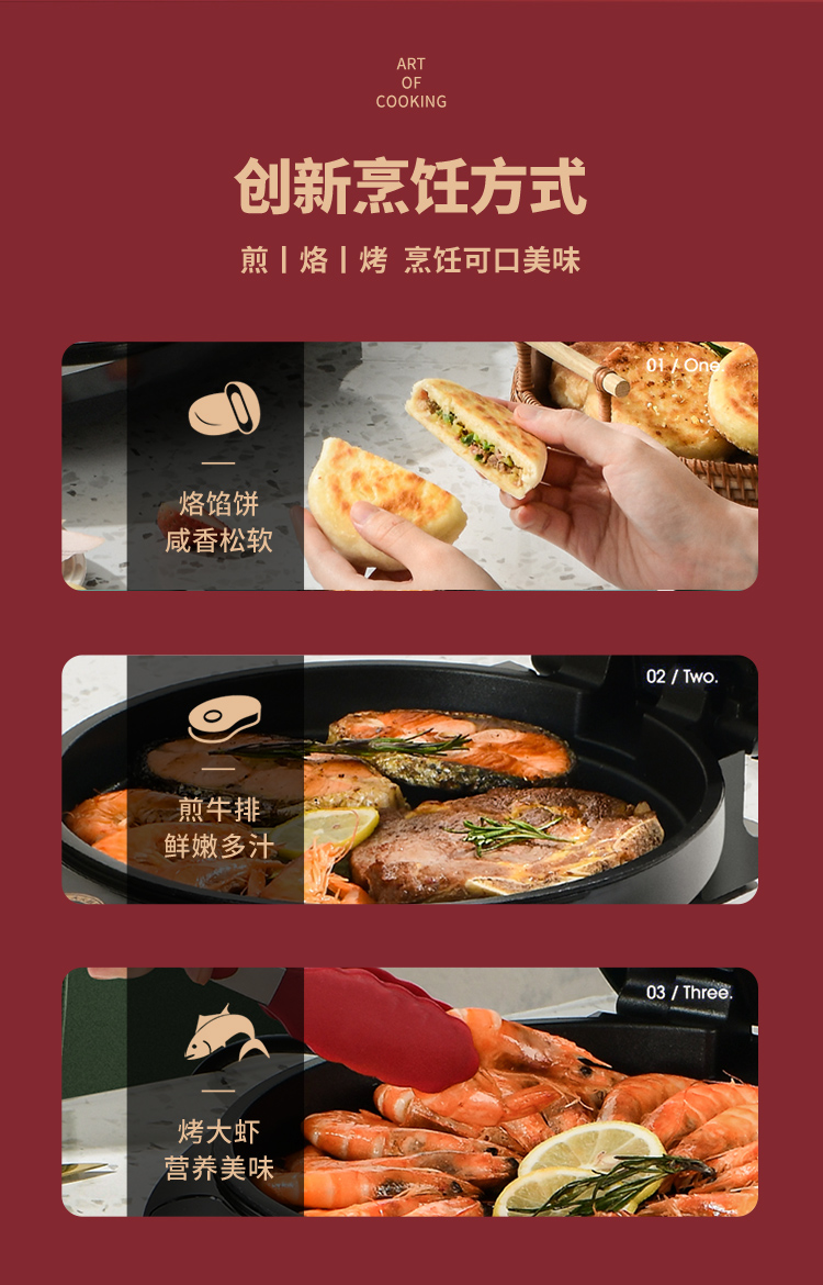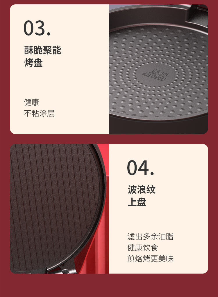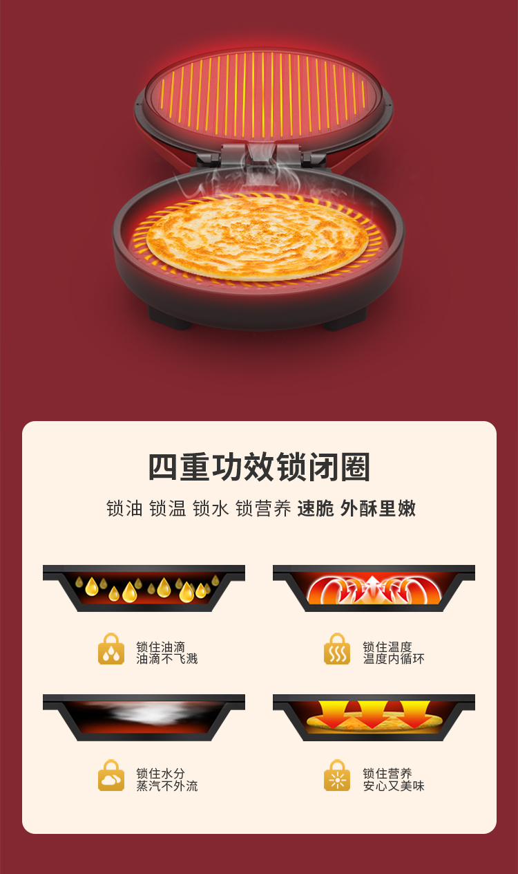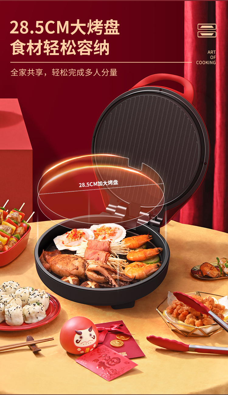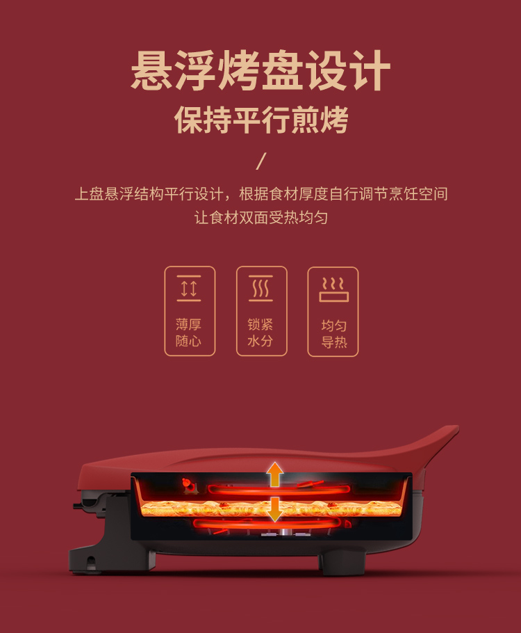 利仁(Liven) 家用双面加热深烤盘大火力烙饼锅煎饼锅煎烤机电饼档 LPBC-101红色 中国红