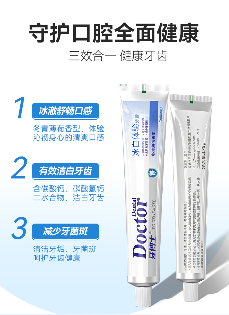 牙博士 冰白体验牙膏 冰澈舒畅 175g(含2支牙刷) 混色(单位:组)