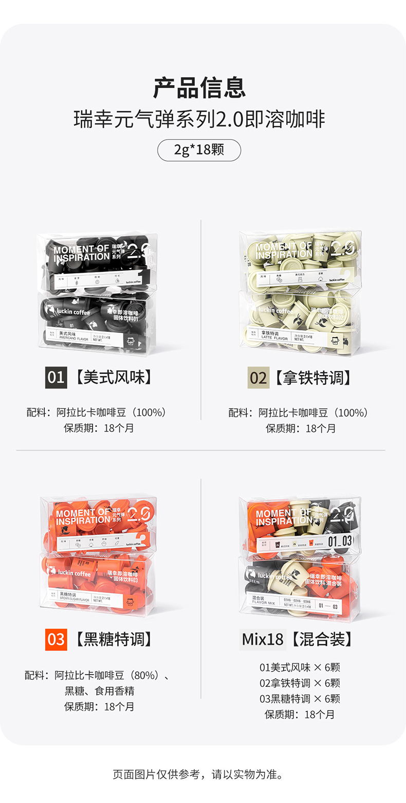 瑞幸咖啡元气弹系列2.0即溶咖啡-Mix18混合装升级款2g*18颗RX0006 拿铁色