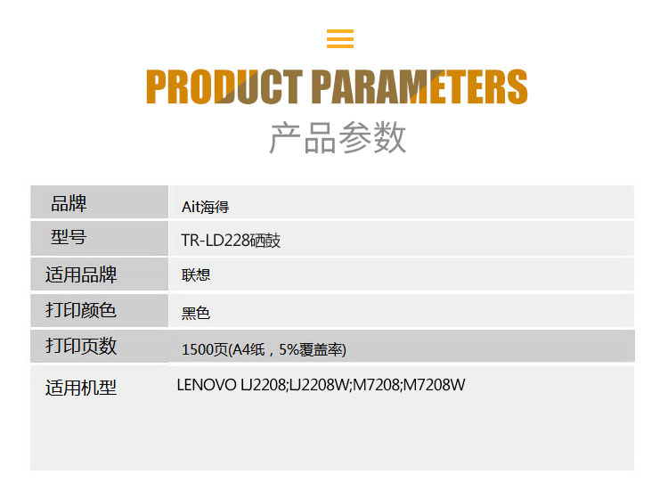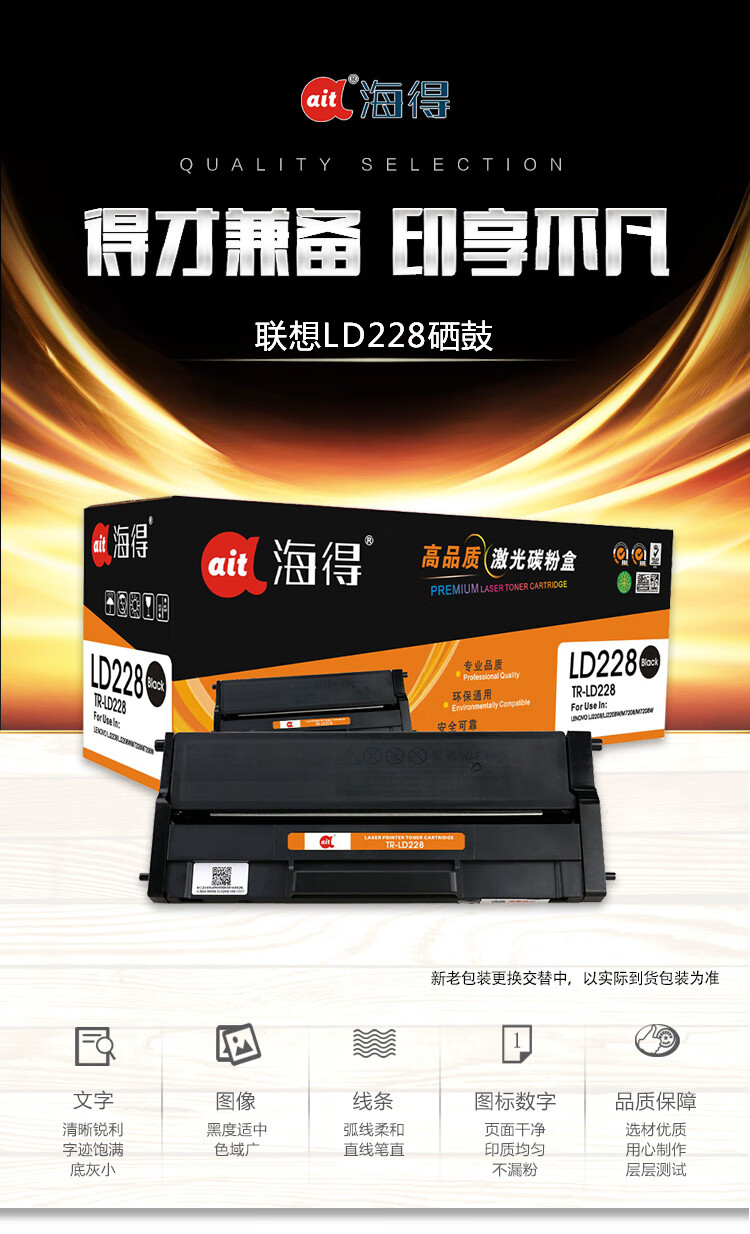 海得(ait) AIT-LD228 专业版 打印量约1500页 适用联想LENOVO LJ2208 LJ2208W M7208 M7208W 硒鼓 1.00 只/支 (计价单位:支) 黑色