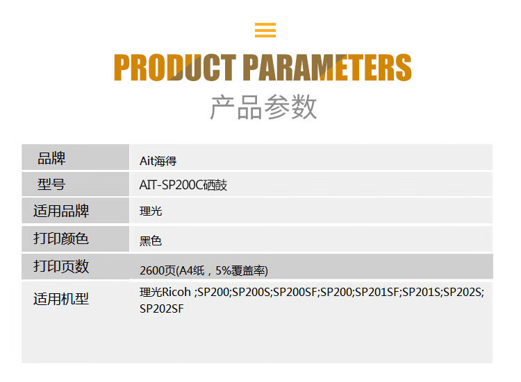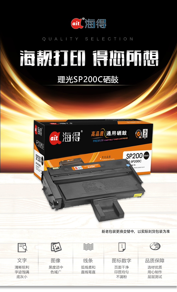 海得(ait) AIT-SP200C 专业版 打印量约2600页 适用理光SP200 SP200S SP200SF SP201SF 硒鼓 1.00 只/支 (计价单位:支) 黑色