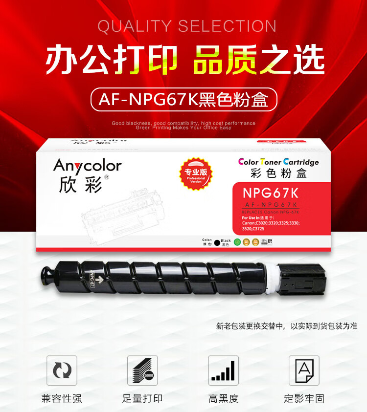 欣彩(Anycolor) AF-NPG67K专业版大容量 打印页数:36000页 适用佳能C3020 C3120L 3320 3325 粉盒 (计价单位:只) 黑色