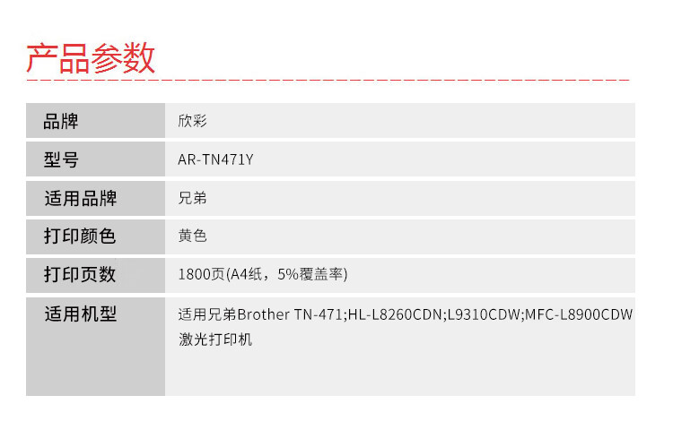 欣彩(Anycolor) AR-TN471Y 1800页 (计价单位:支) 黄色 黄色