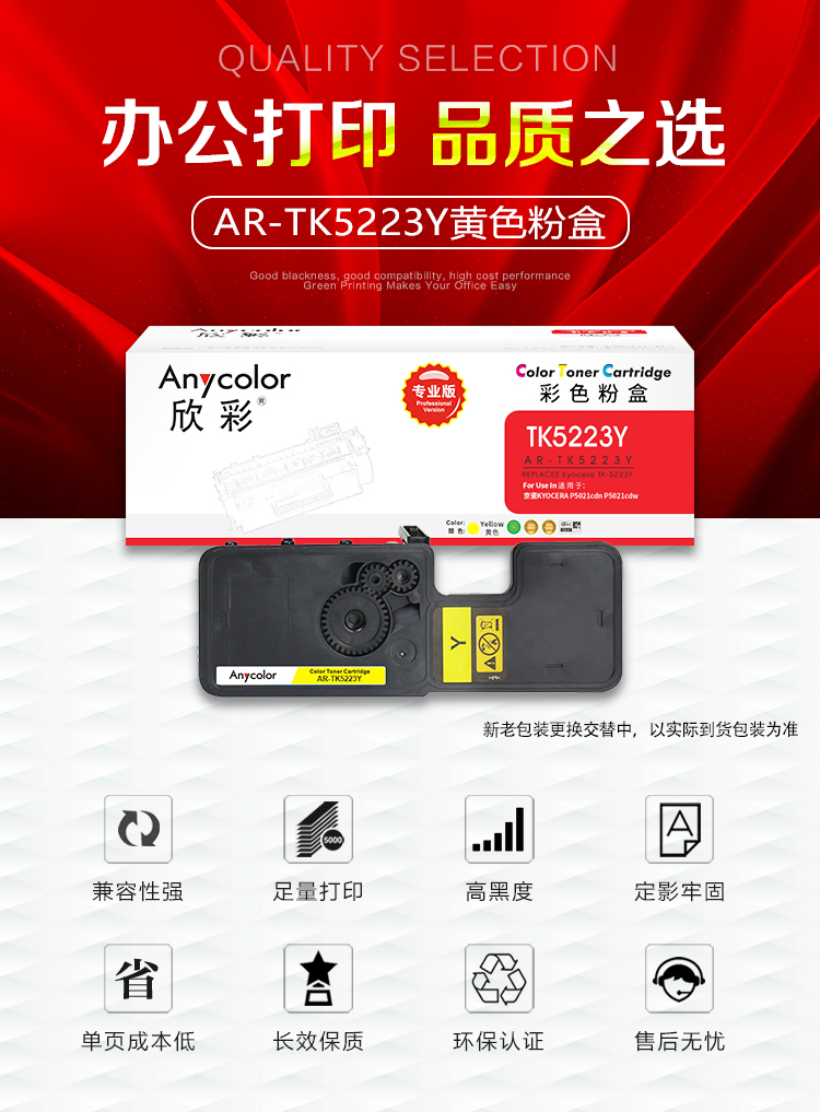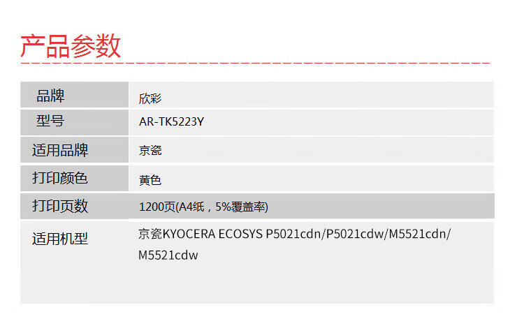 欣彩(Anycolor) AR-TK5223Y 1200页 粉盒(计价单位:支) 黄色 黄色