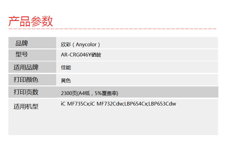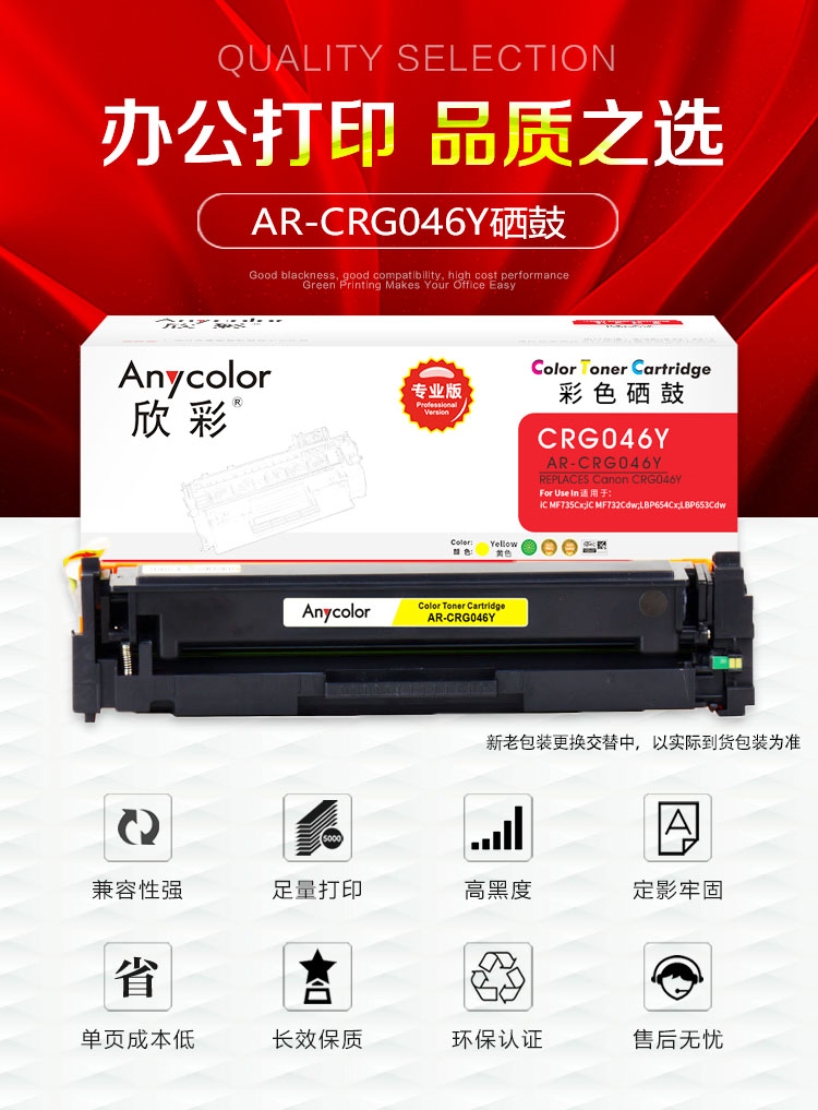 欣彩(Anycolor) AR-CRG046Y 专业版 2300页 (计价单位:支) 黄色 黄色