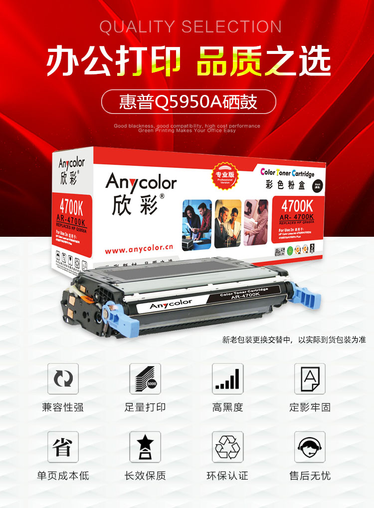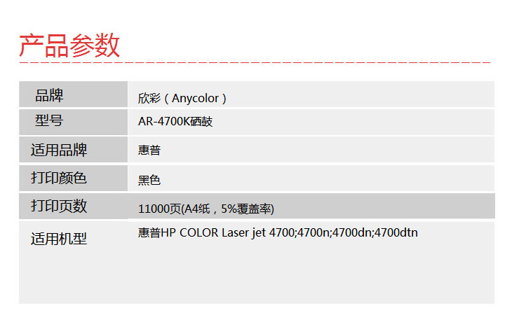 欣彩(Anycolor) AR-4700K 专业版 11000页 适用惠普4700n 硒鼓 1.00 只/支 (计价单位:支) 黑色