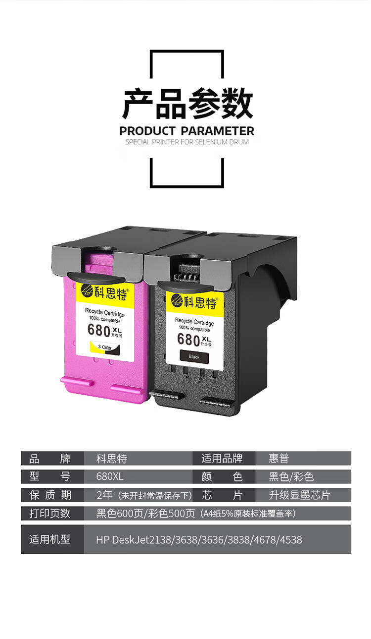 科思特 680XL 打印量500页 适用惠普2138/3638/3636 墨盒 (计价单位:盒) 黑色