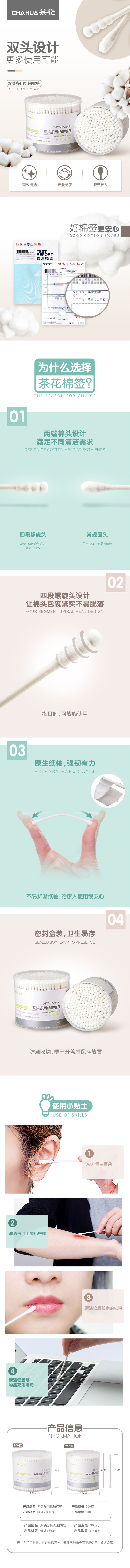 茶花双头多用纸轴棉签(200支)G10007 混色
