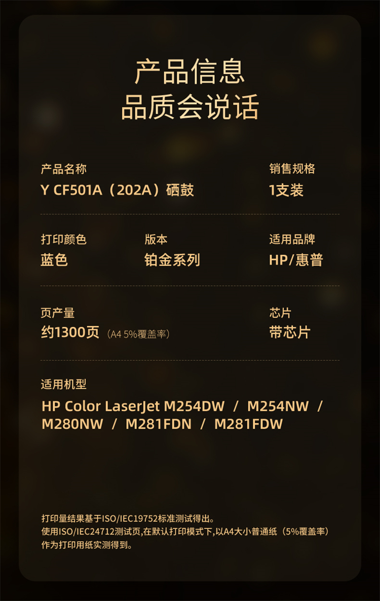 印友(YINYOU) Y CF501A(202A)1300页 铂金系列(带芯片) 适用于惠普 HP M254DW/M254NW/M280 硒鼓 1.00 只/支 (计价单位:支) 蓝色