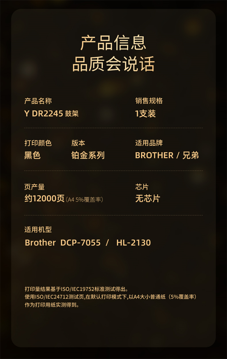 印友(YINYOU) 铂金系列 Y DR2245 鼓架(无芯片)适用兄弟 DCP-7055/HL-2130 打印量:12000页 鼓架 (计价单位:只) 黑色