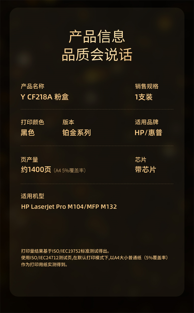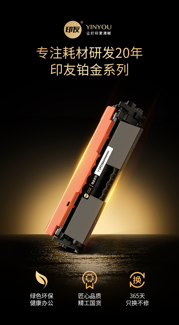 印友(YINYOU) 铂金系列 Y CF218A 黑色粉盒(带芯片)适用惠普 HP LaserJet Pro M104a/M104W 打印量:1400页 粉盒 (计价单位:只) 黑色