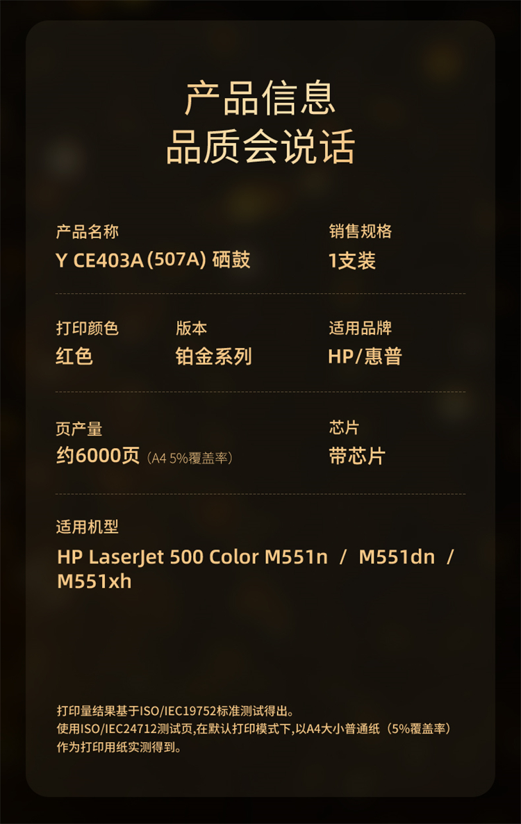 印友(YINYOU) 铂金系列 Y CE403A(507A)(带芯片)适用惠普 HP M551n/M551dn/M551xh 打印量:6000页 硒鼓 (计价单位:只) 红色