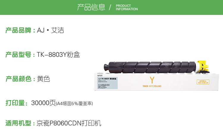 艾洁(AJ) TK-8803Y 打印量30000页适用京瓷P8060cdn打印机墨粉盒等粉盒 硒鼓 (计价单位:只) 黄色