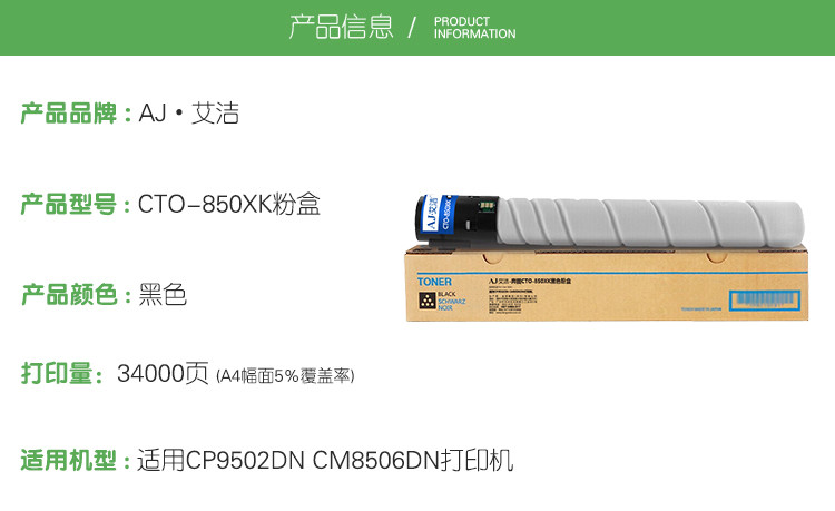 艾洁(AJ) CTO-850XK打印量34000页适用奔图CP9502DNCM8506DN打印机等粉盒 硒鼓 (计价单位:只) 黑色