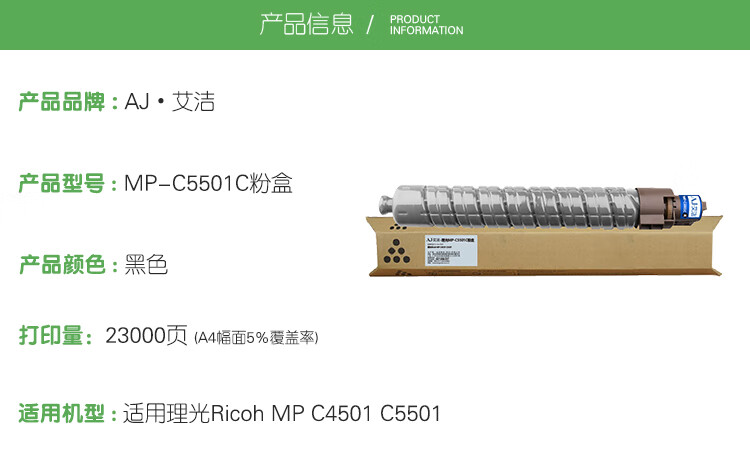 艾洁(AJ) MP-C5501C打印量23000页适用理光RicohMPC4501C5501复合机墨粉盒碳粉盒等粉盒 硒鼓 (计价单位:只) 黑色