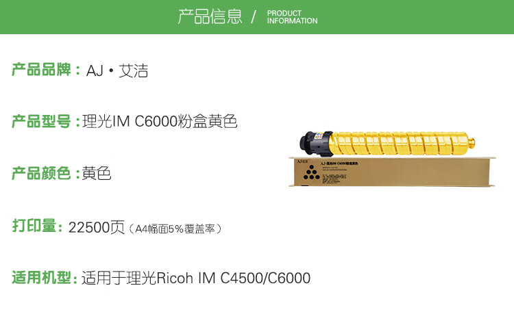 艾洁(AJ) IM C6000打印量22500页适用于理光RicohIMC4500/C6000等粉盒 黄色 硒鼓 (计价单位:只) 黄色