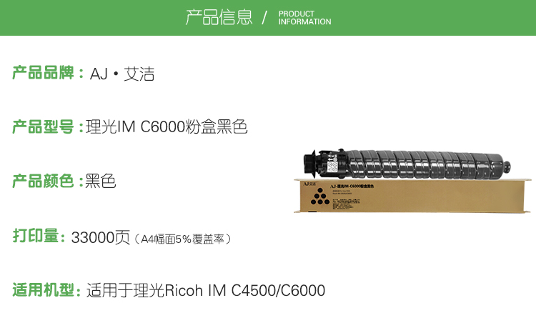 艾洁(AJ) IM C6000打印量33000页适用于理光RicohIMC4500/C6000等粉盒 硒鼓 (计价单位:只) 黑色