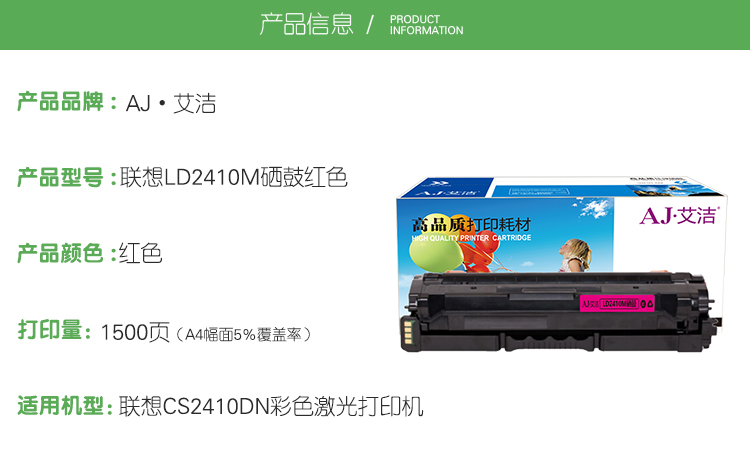 艾洁(AJ) LD2410M打印量1500页适用于联想CS2410DN彩色激光打印机等硒鼓 硒鼓 (计价单位:只) 红色