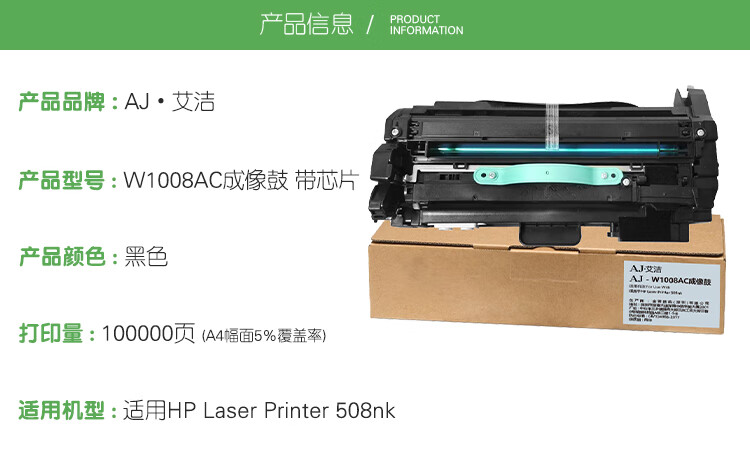 艾洁(AJ) W1008AC打印量100000页成像鼓带芯片适用HPLaserPrinter508nkW1007AC硒鼓架等硒鼓 硒鼓 (计价单位:只) 黑色