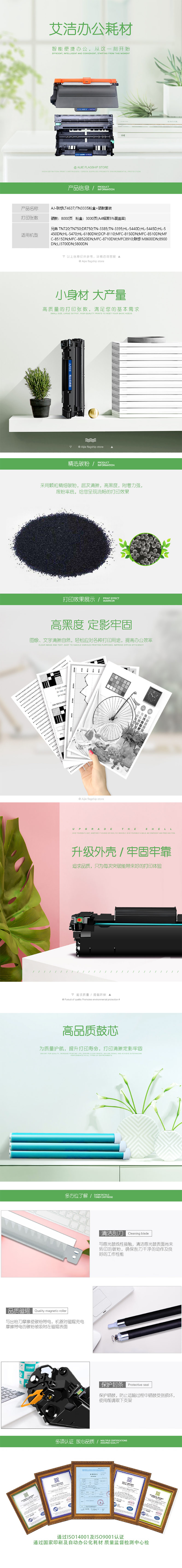 艾洁(AJ) LT4637/TN3335+套装 打印量硒鼓:8000页 粉盒:3000页 适用兄弟HL-5440D;HL-5445D;HL-5450DN; 硒鼓 (计价单位:只) 黑色