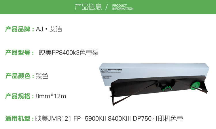 艾洁(AJ) FP8400k3 打印量12.7mm*16m 适用映美JMR121 FP-5900KII 8400KIII DP750打印机 色带 1.00 盒/只 (计价单位:只) 黑色