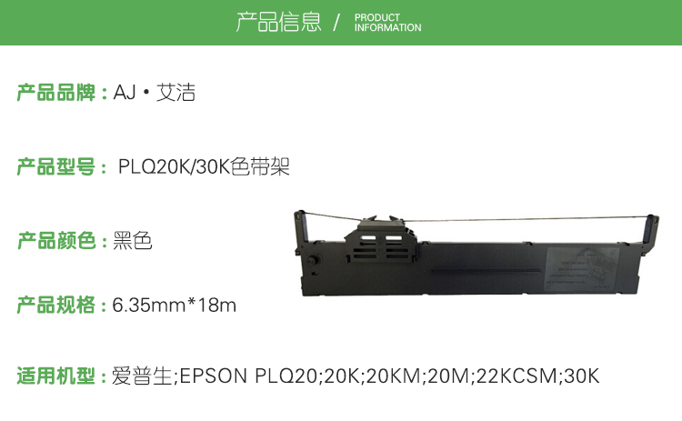 艾洁(AJ) PLQ20K/30K 打印量6.35x18 适用爱普生;EPSON PLQ20;20K;20KM;20M;22KCSM;30K 色带 1.00 盒/只 (计价单位:只) 黑色
