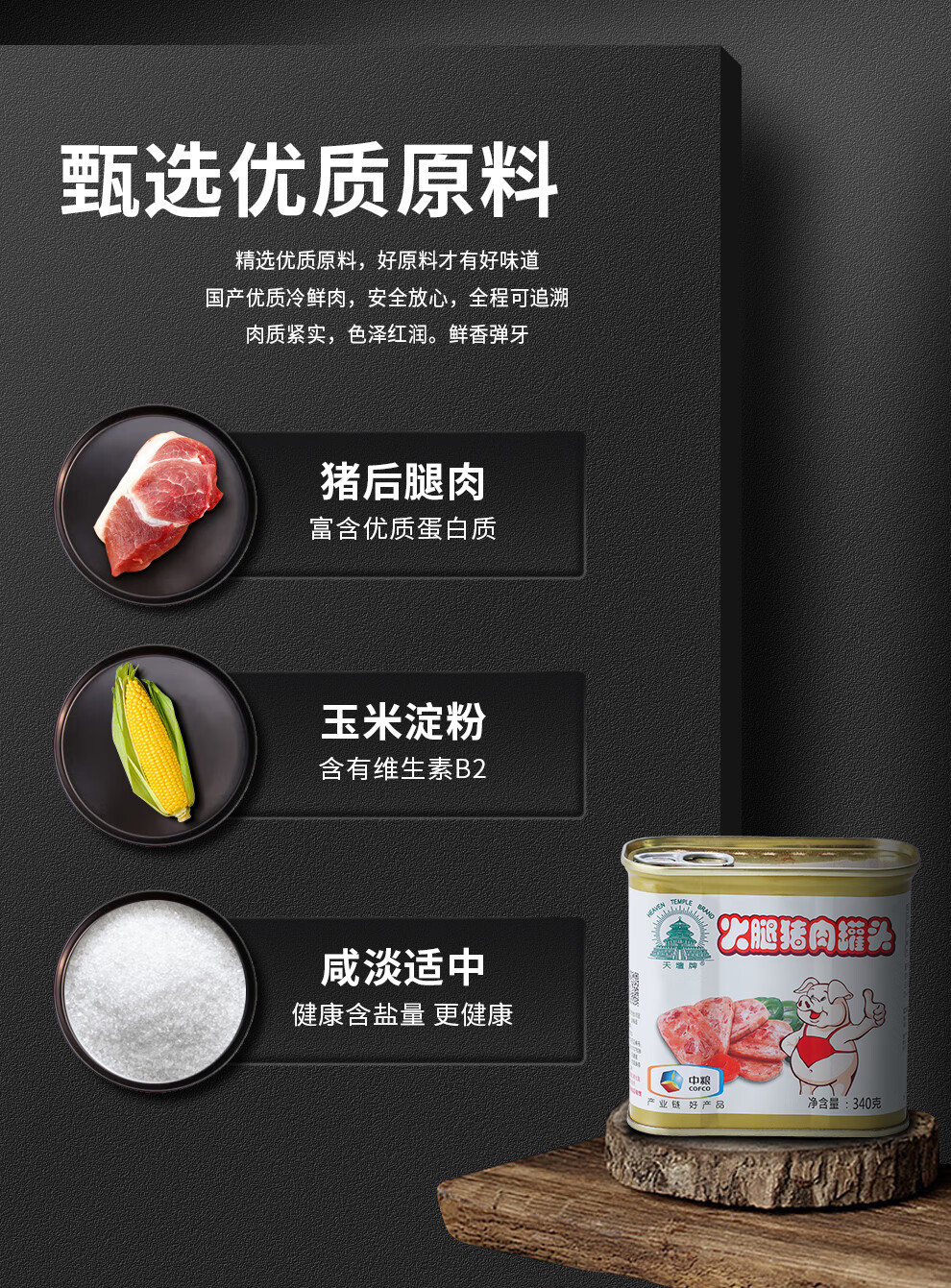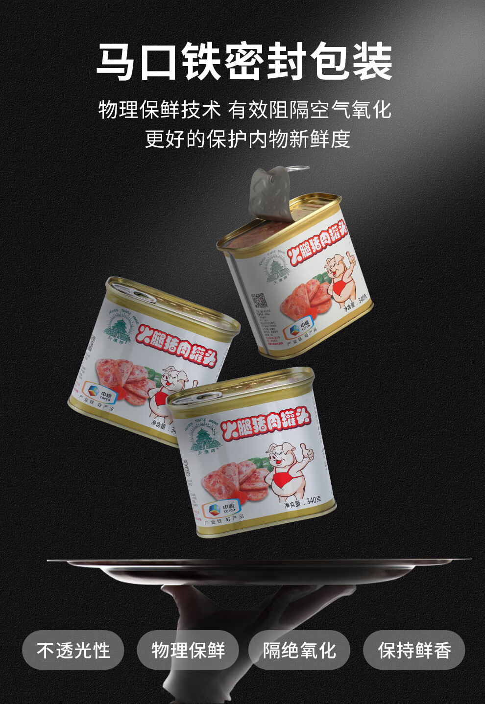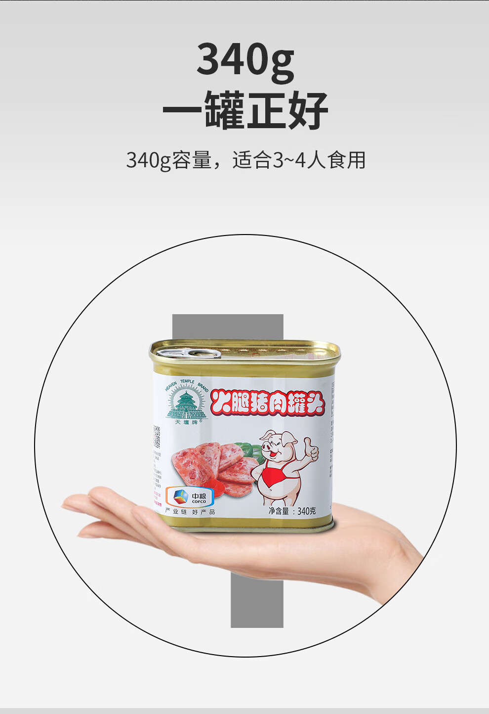 天坛牌火腿午餐肉罐头340g*24罐(原装整箱24罐) 混色