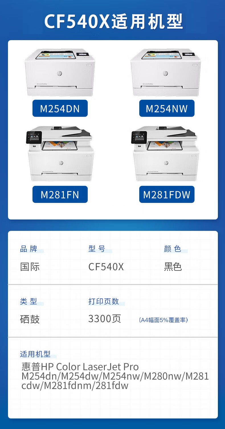 国际 CF540X大容硒鼓 惠普M254dw M281fdW M280NW 单位:支 黑色