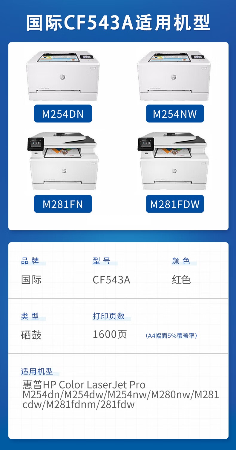 国际 CF543A硒鼓 惠普M254dw M281fdW M280NW 单位:支 红色