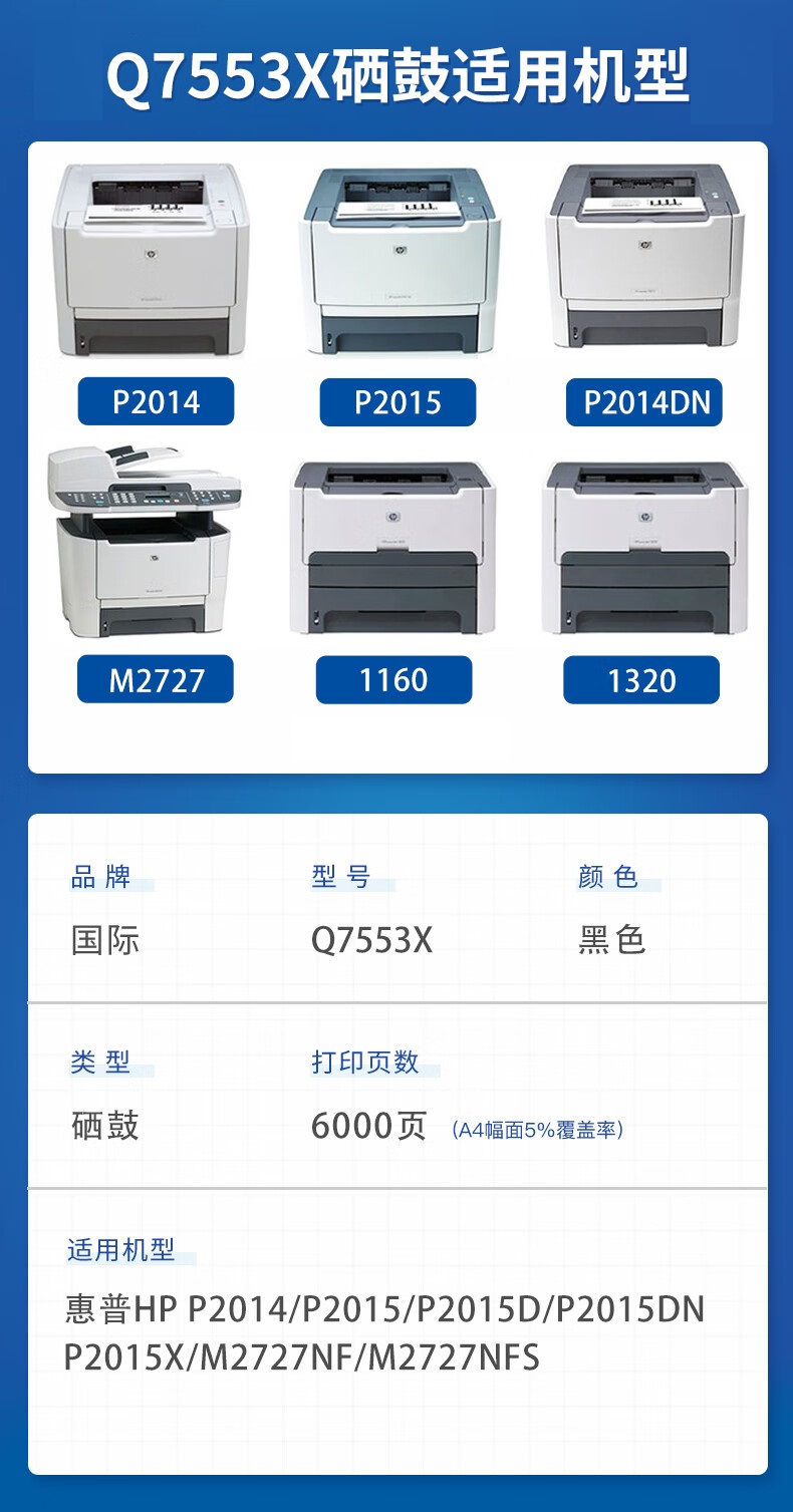 国际 Q7553X大容硒鼓 惠普M2727nf P2015d P2014 单位:支 黑色