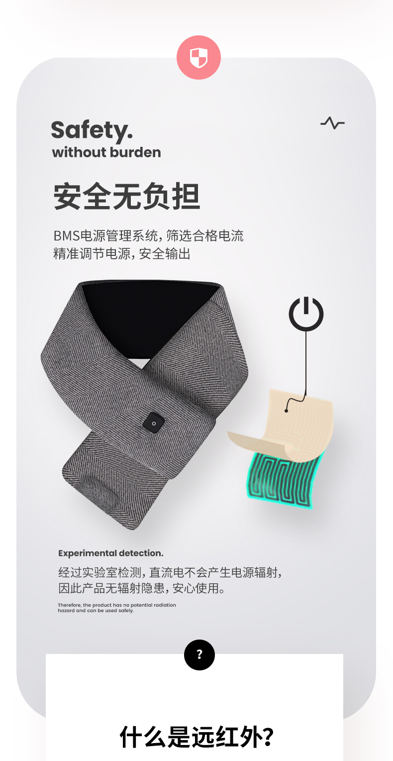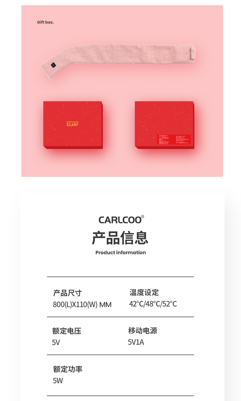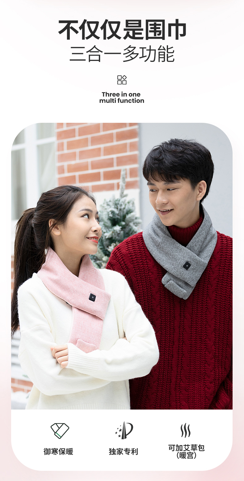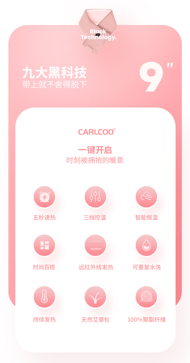 卡乐酷自发热围巾冬季颈椎智能加热充电保暖神器围脖披肩护颈 1盒 粉色