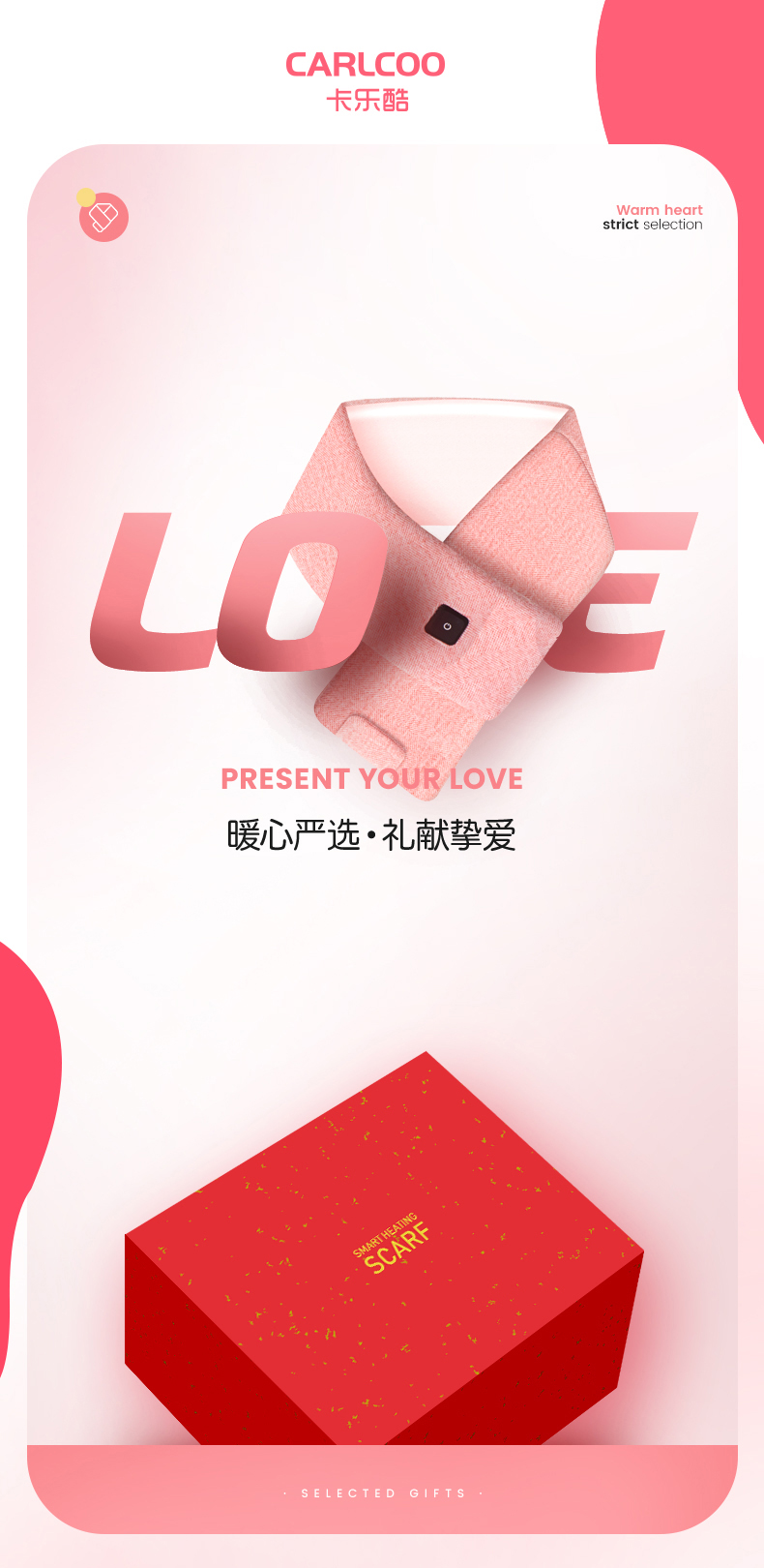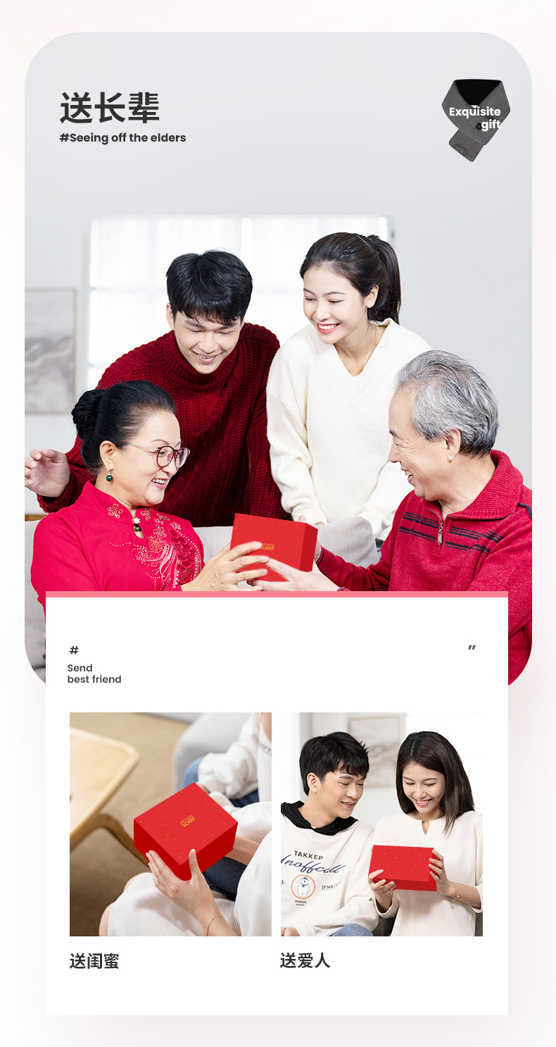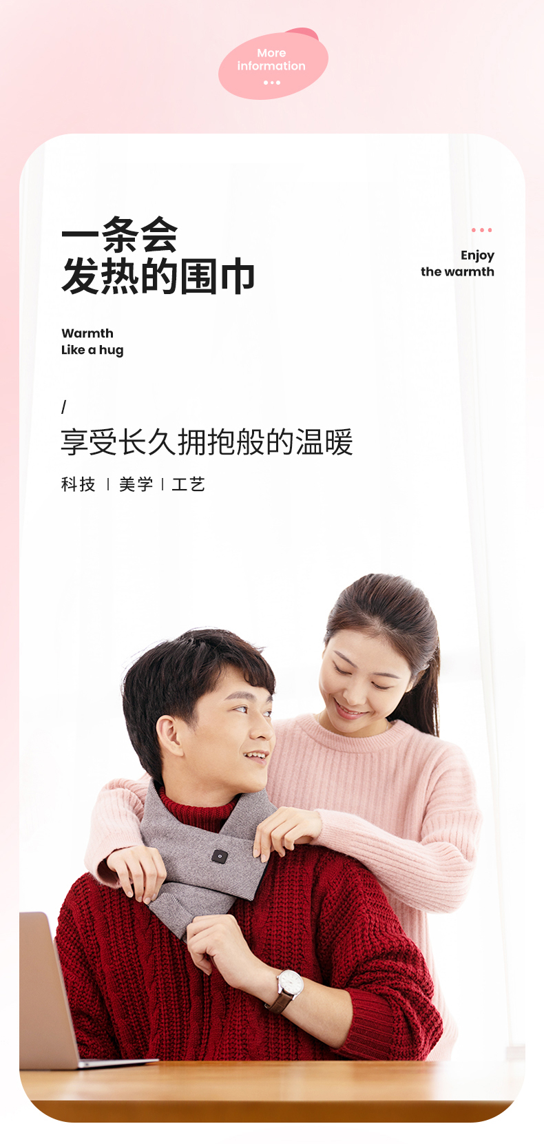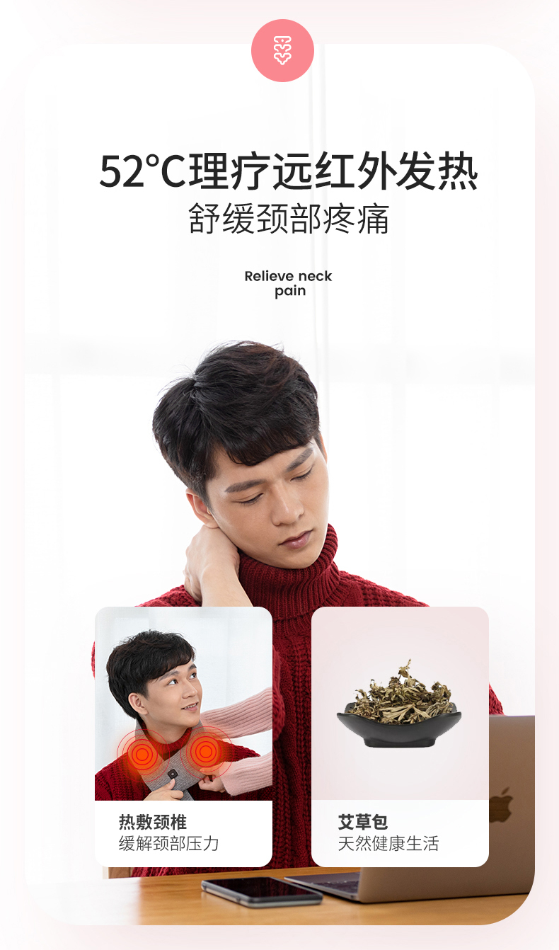 卡乐酷自发热围巾冬季颈椎智能加热充电保暖神器围脖披肩护颈 1盒 粉色