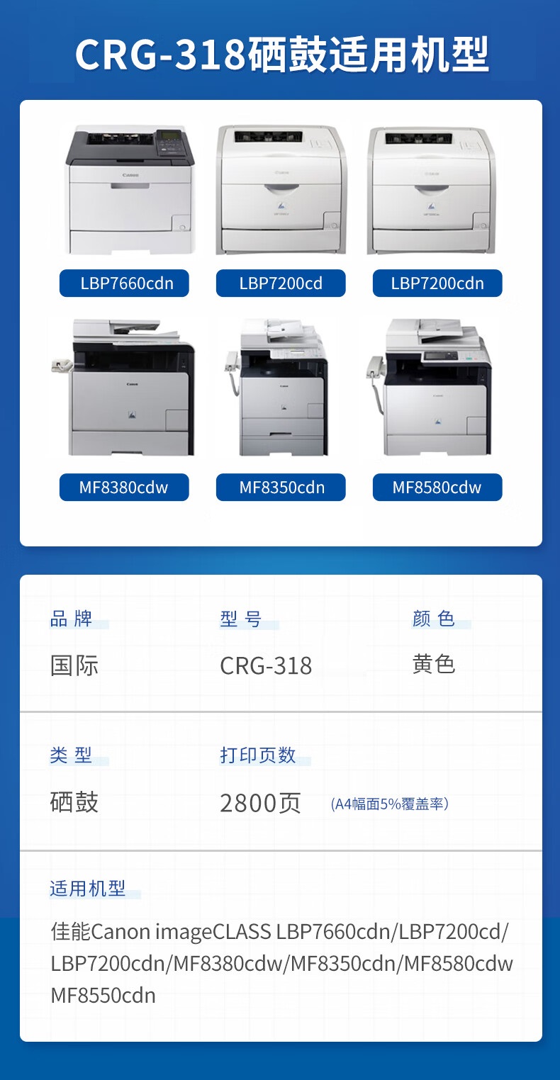 国际 CRG-318硒鼓 佳能LBP7660CDN LBP7200Cdn 单位:支 黄色
