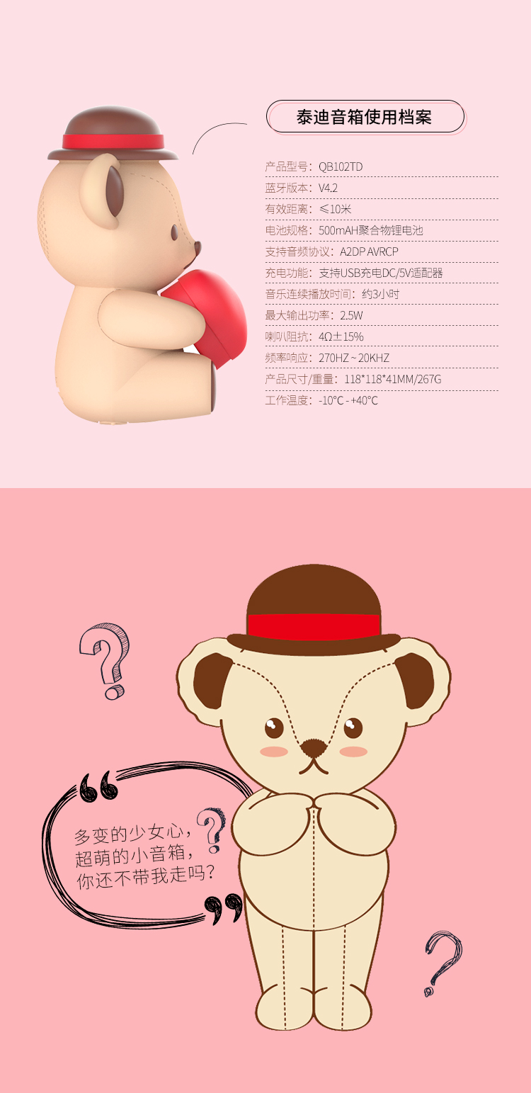 泰迪珍藏抱心蓝牙音箱1盒 褐色