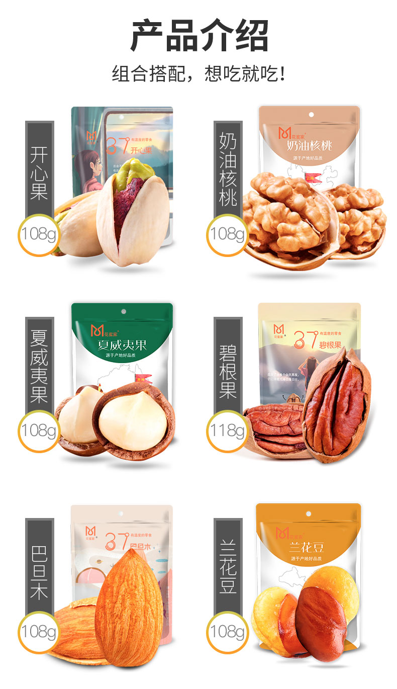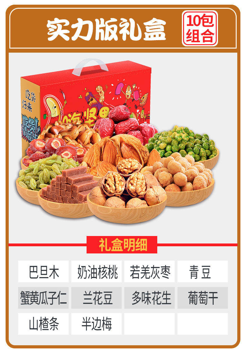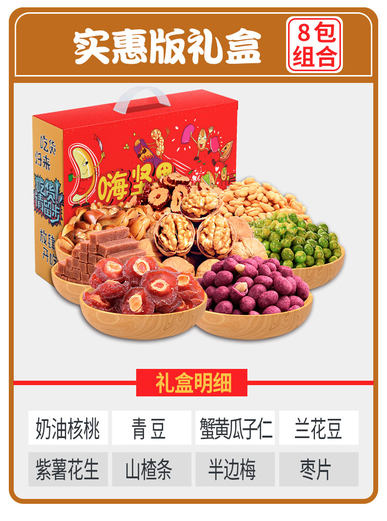 花蜜家 礼盒 大包装 坚果礼盒 过节佳品 864g实惠装礼盒(8款8包) 图片色