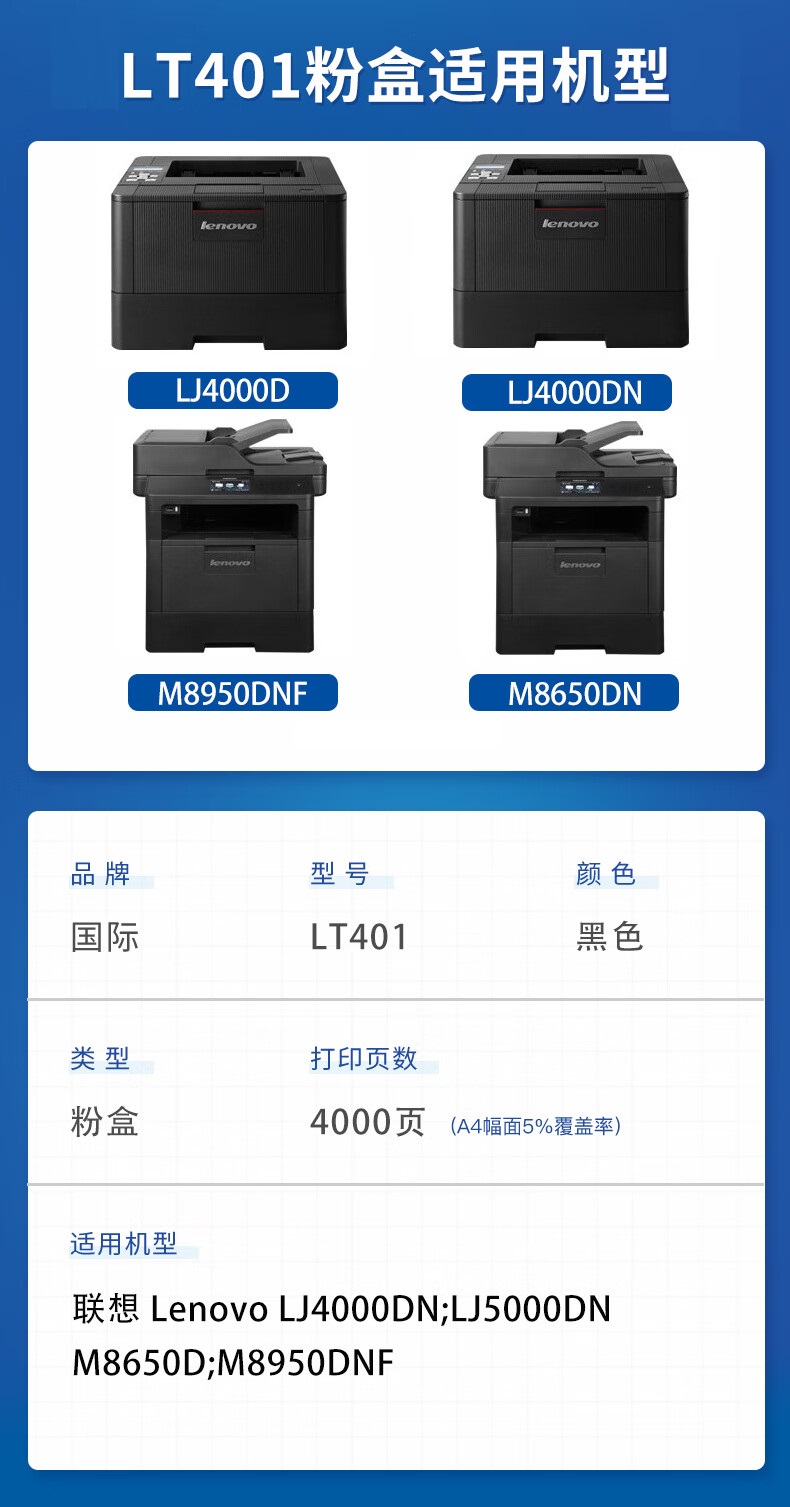 国际 LT401粉盒 联想M8650DN M8950DNF LJ5000DN单位:支 黑色